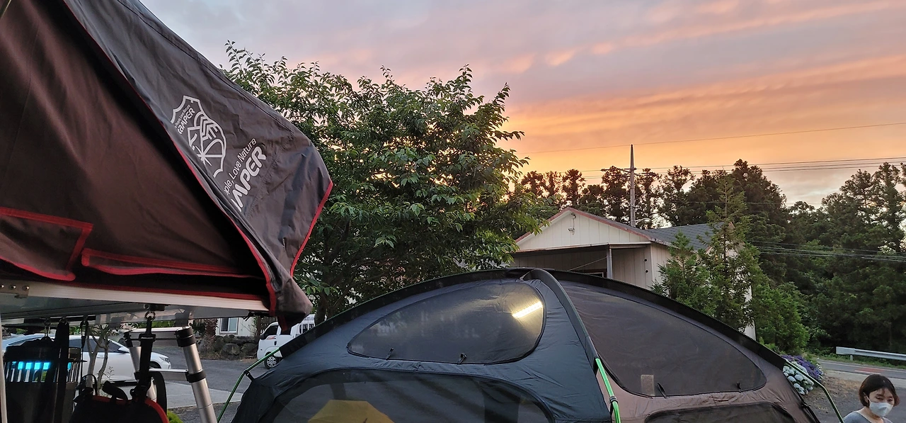 저희는 루이지쉘터를 펴놓고 루프탑텐트 아이캠퍼는 접고 제주 북쪽인 함덕, 김녕 등을 관광했습니다. 북동쪽을 둘러보고 들어와서 휴식을 취하기엔 매우 좋은 위치였죠. 저희 여행계획과도 딱 맞았고요.(아래글 참조)