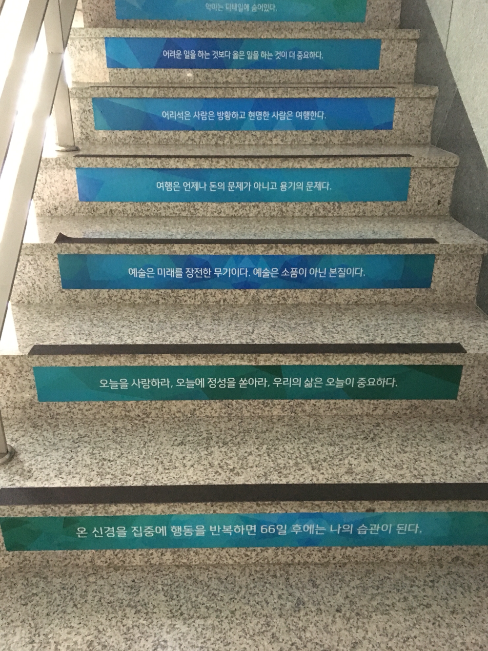 우리는 계단보다 길에서 더 많은 시간을 보낸다. 길은 흐름이고, 계단은 구분이다. 인생을 계단이라 생각하면 숨이 찬다. 길을 걷듯 주변도 둘러보고, 쉬어가며 그렇게 살자. 우리 삶의 가치는 계단 같은 고저에 있는 게 아니라 길 같은 흐름에 있는 거니까.