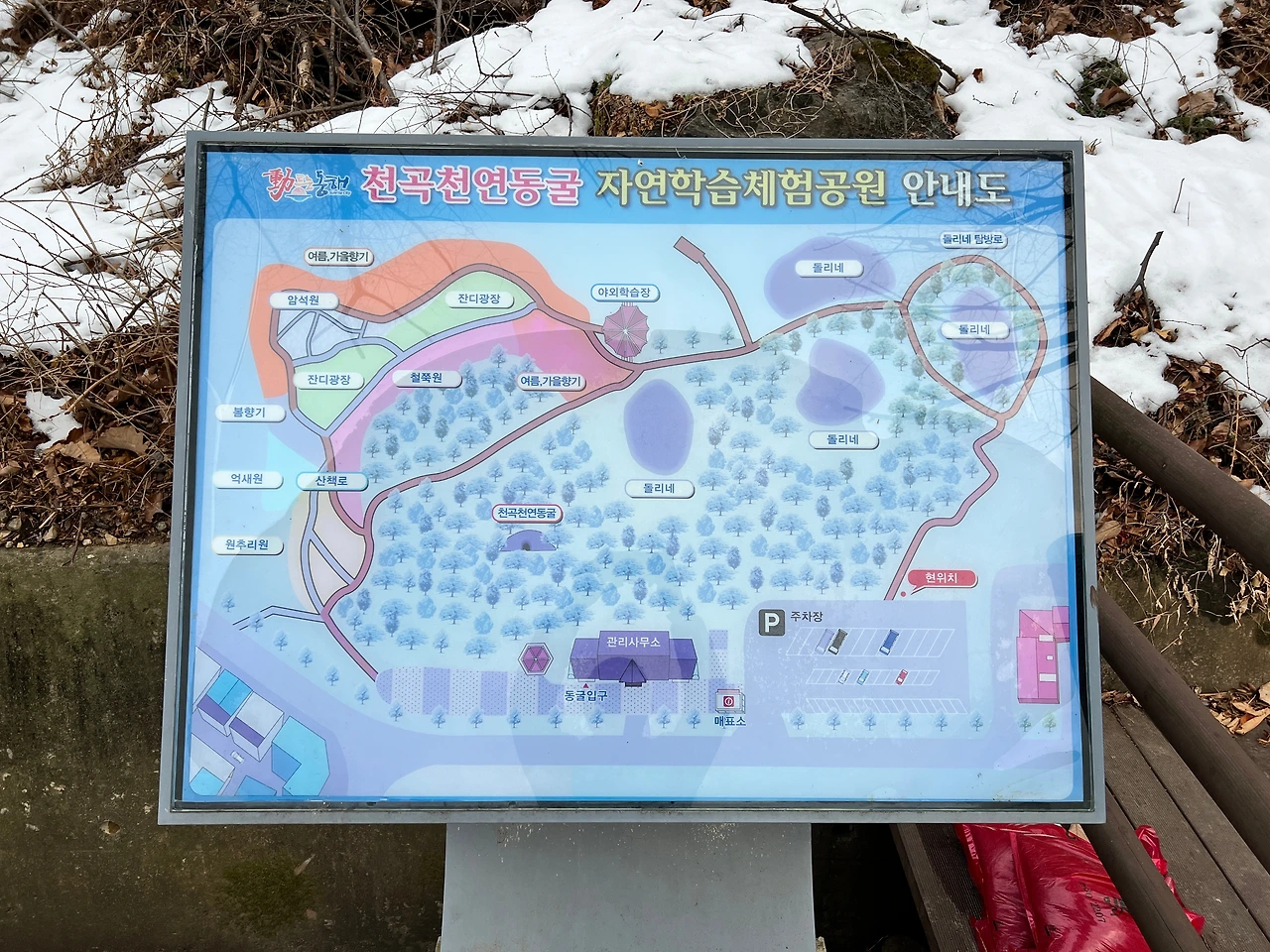 동굴 위 체험관에는 동굴과 관련된 지식을 함양할 수 있는 체험관이 있다. 초등학교 이상, 지형과 지리를 어느 정도 아는 아이들이라면 흥미 있게 들을 수 있는 이야기들이 제법 담겨 있다. 동굴 주차장 앞에는 체험공원이 조성되어 있다. 돌리네 지형을 볼 수 있는 곳인데요. 석회암 지대에서 쉽게 발견할 수 있는 함몰된 땅이라고 한다. 그냥 땅이 꺼졌나보다 생각했던 지형의 의미를 다시 본다.
