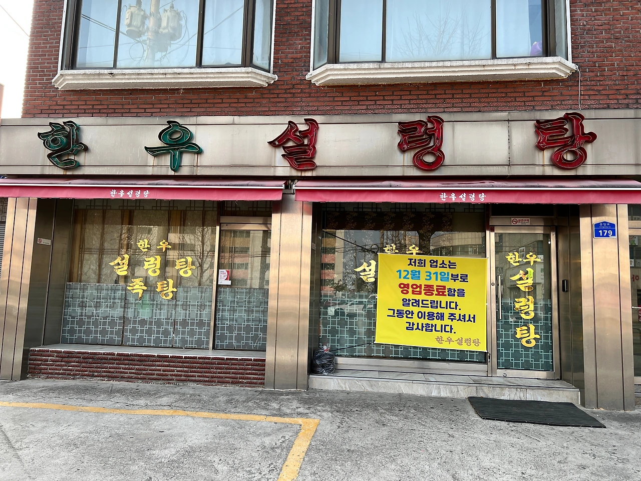 코로나 여파였을까. 가게가 폐업했다. 30년 가까이 나의 추억이 사라진 기분이다. 아이도 나도 한동안 멍했다. 이렇게 사라질 곳이 아닌데… 코로나가 망쳐버린 우리의 일상이 슬프다. 동해시의 한우설렁탕은 더이상 없다.