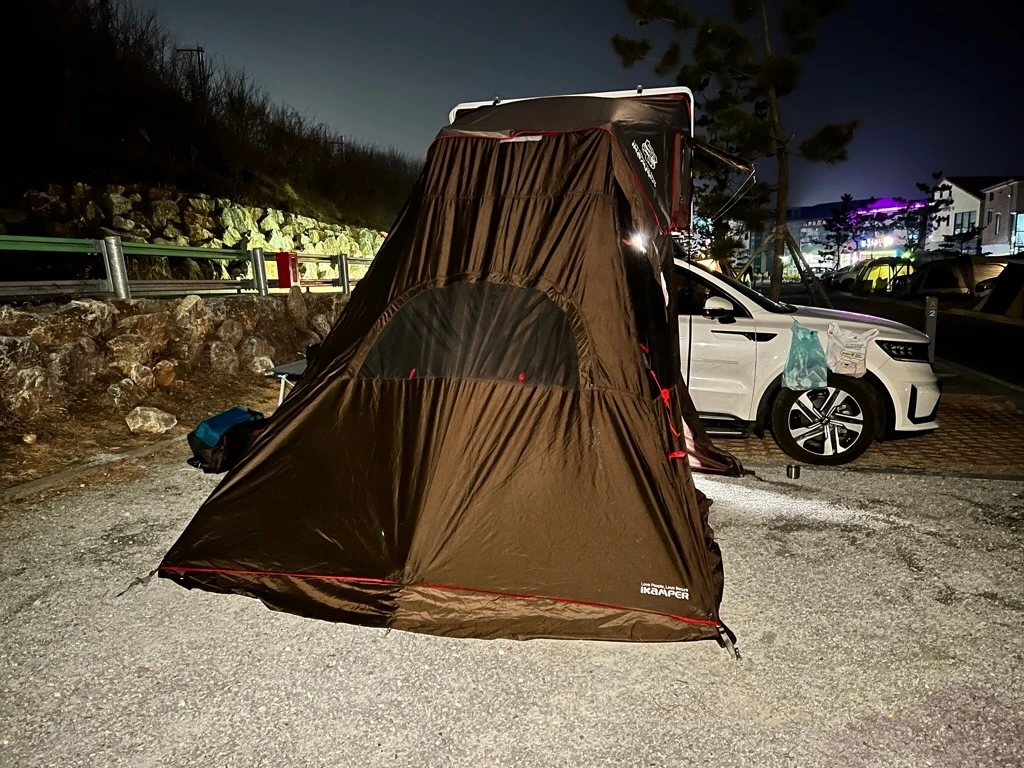 아이캠퍼 어넥스S로 쉽고 빠르게 우리의 쉼터를 만든다. 삼척동자도 몰랐을 만큼 우리의 여행은 기대보다 행복했다. 내일 집으로 돌아가는 길에 들릴 강릉 이야기가 기다려진다.
