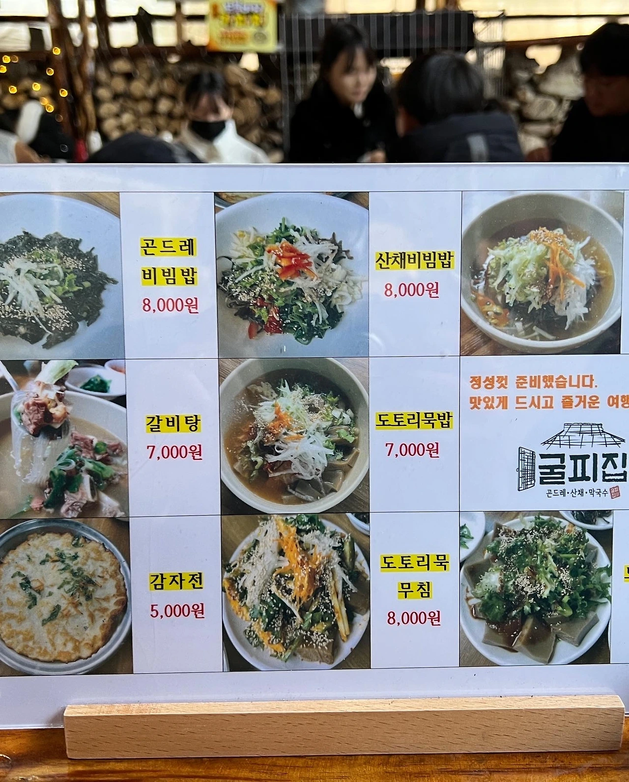 굴피집의 메뉴는 신선함이 가득하다. 굴피집의 이름은 이 지역 전통집의 종류인 굴피집, 너와집 중 굴피집에서 따왔다고 한다. 아들과 나는 갈비탕, 도토리묵밥, 감자전을 먹었는데 뭐하나 빠질 것 없이 일품이다. 묵밥은 고소하고 탱글 하며, 갈비탕은 깊고 부드러우며, 감자전은 바삭쫄깃하다. 반찬도 정갈하고 깔끔하다. 이곳 때문에 환선굴을 다시 오고 싶을 정도로 맛있었다.