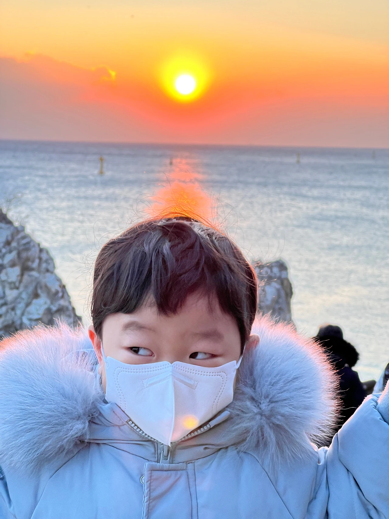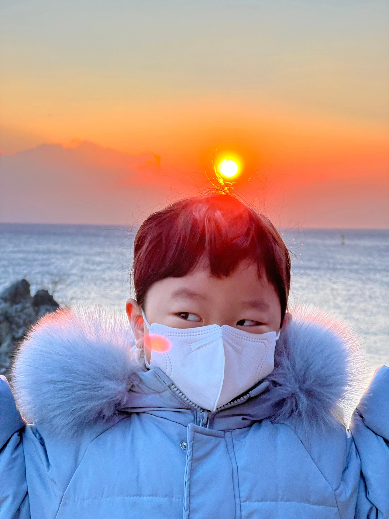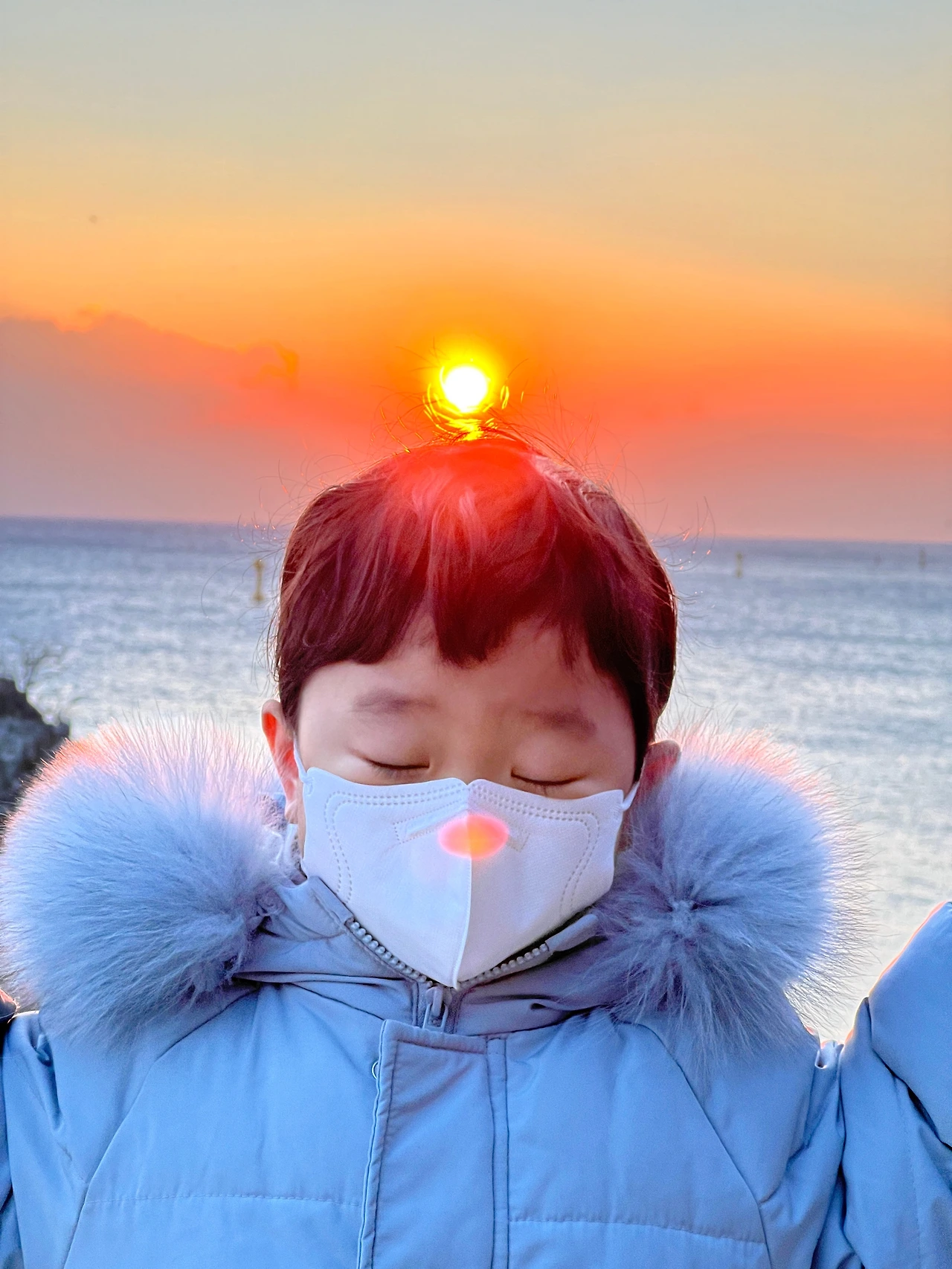 올해는 아들과 맞이하는 다섯 번째 해, 오늘 뜨는 해는 우리가 맞이한 첫해다. 처음 만날 때 설렘처럼 아이의 사랑하고 키우겠다 다짐해본다. 한결이는 무슨 소원을 빌었을까. 아이에게 태양의 기운이 듬뿍 담기길 바라며 머리 위에 해를 담아준다.