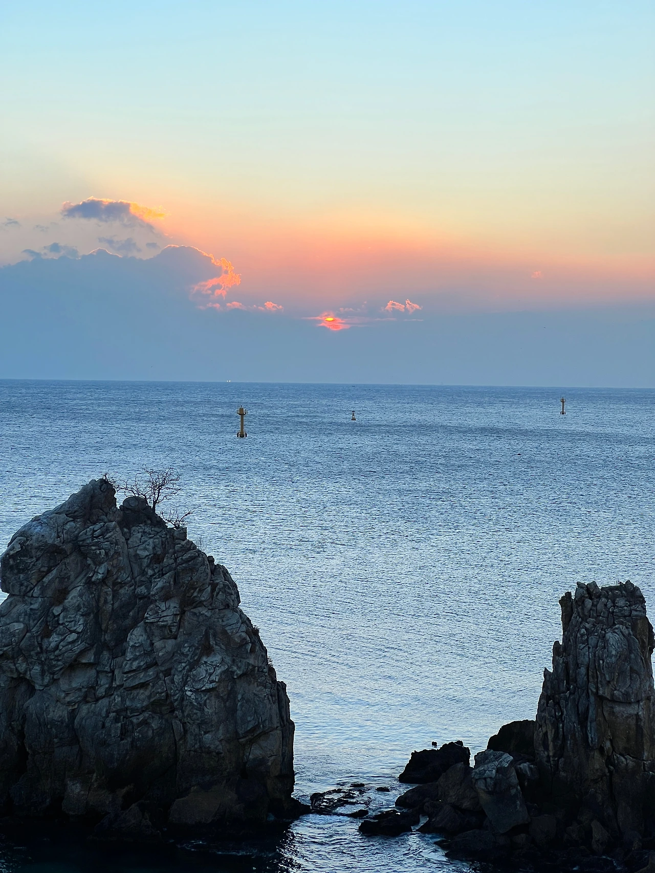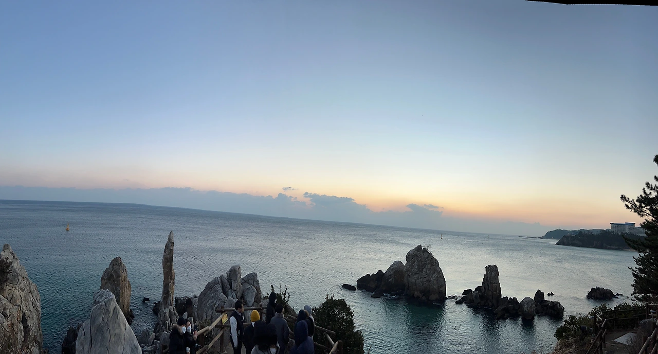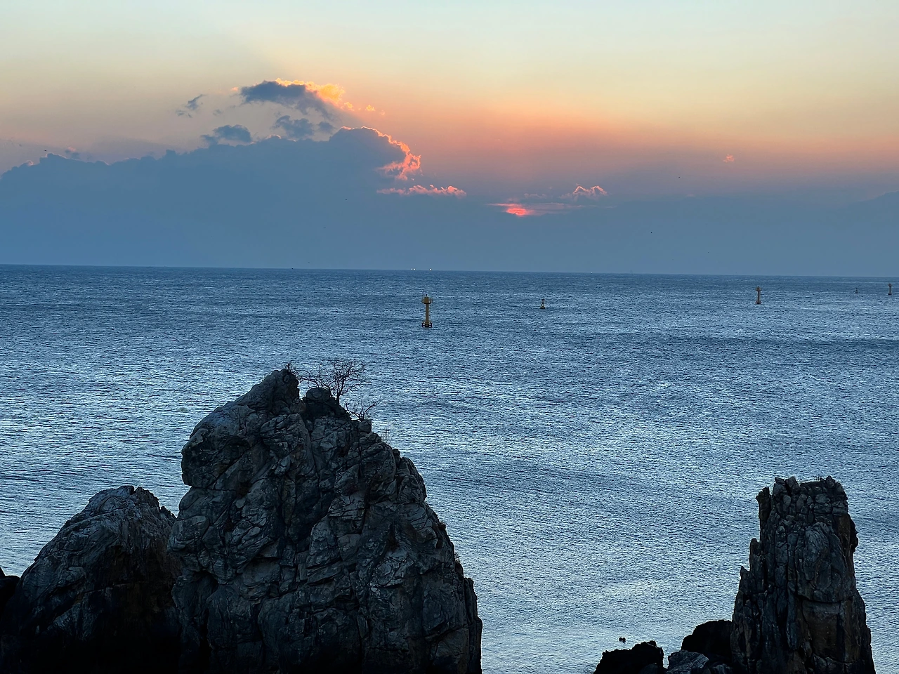 태어난 지 4년 3개월이지만 6살이 된 아들은 아직 일출을 본 적이 없다. 그래서 해 뜨는 바다의 아름다움을 아직 모른다. 하지만 아빠가 보고 싶다고 하니 따라나설 준비를 한다. 일출을 제대로 즐기려면 추암까지 가야 하는데 언덕이라 6살 아이에겐 꽤 높다. 그러나 환선굴을 뚫어낸 집념으로 성큼성큼 오른다. 6살 아이의 뒷모습이 이리 늠름해도 되는가 싶다. 언덕에 올라 바다를 바라보니 용머리 구름이 바다 저편을 휘감고 있다. 일출 컨디션이 안 좋다.