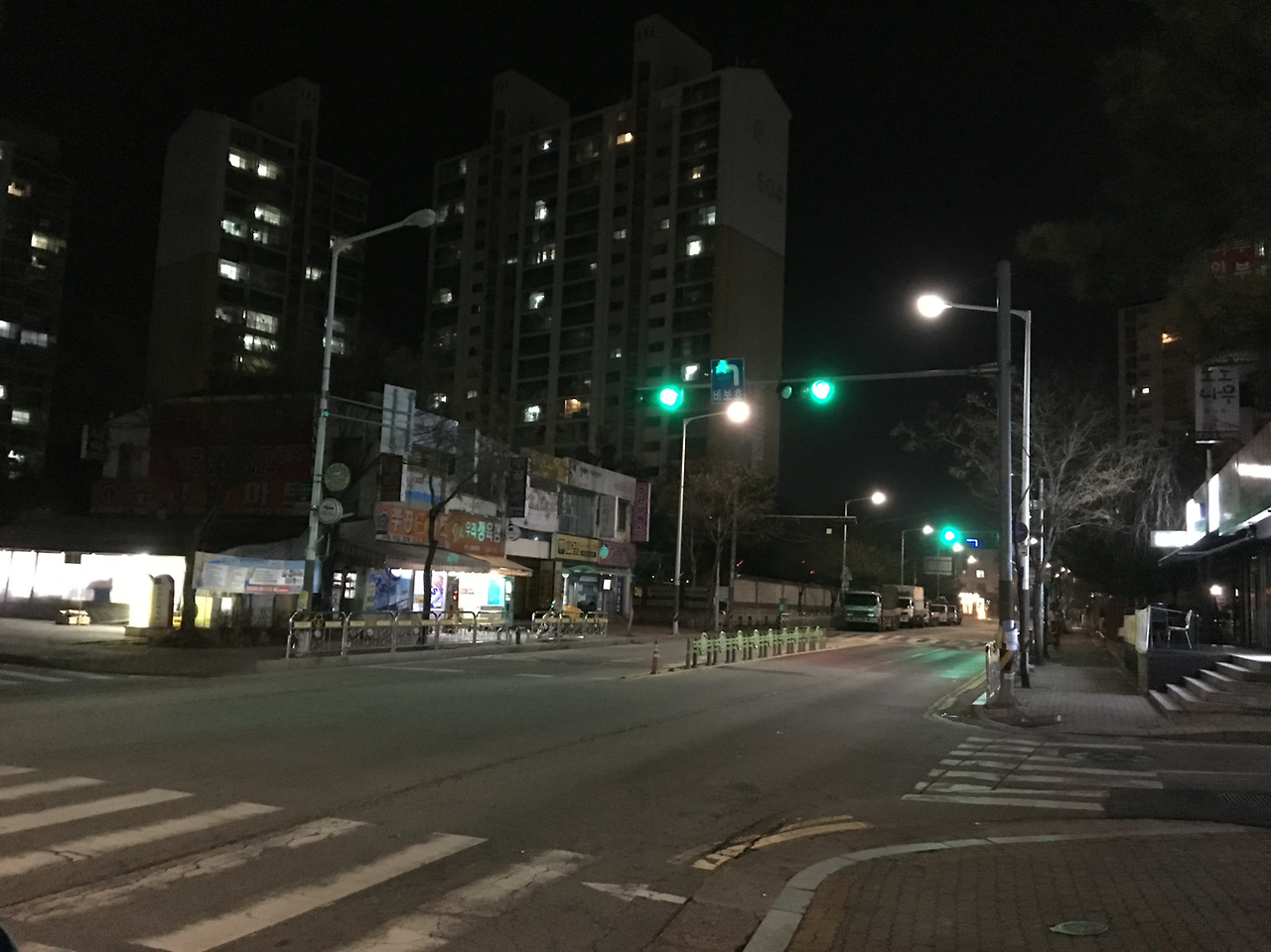 갈 길 잃은 신호등이 길에 서 있다.