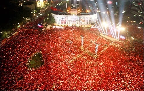 몇강전인지 기억은 가물가물한데 전방에는 분명 비가 추적추적 오는날이었다. 나도 막사에서 응원을 했었는데 태극전사의 승리에 기뻐함도 잠시 , 근무시간이 되어 비오는 어둠속으로 판초우의를 질척거리며 뒤집어 쓴채로 전선으로 투입되는 기분은 참 묘했었다. 티비에는 아직도 응원하던 국민들은 축제 그 자체를 즐기고 있었는데 나는 근무라는 명목으로 선임에게 갈굼당하러 가는 그 기분이 참 그랬다. (나중에 알았는데 지금의 아내는 바로 그 날 그 티비가 비추고 있었던 광화문 광장에서 붉은악마 티셔츠를 입고 응원하고 있었다고 한다. ㅠㅠ 이것도 인연인가?)