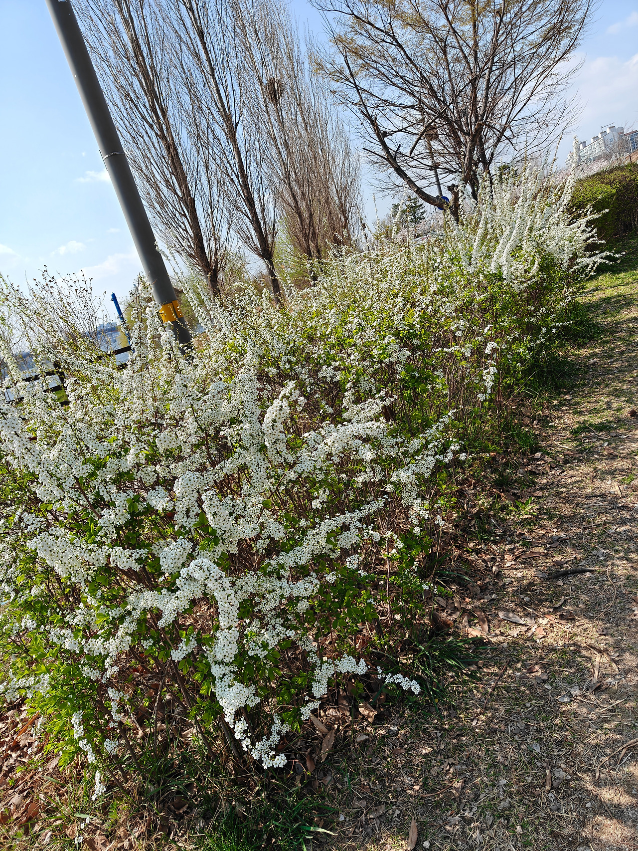 싸리꽃이 한강지구에 만개해서 싸리꽃을 즐기며 걷기 좋다.
