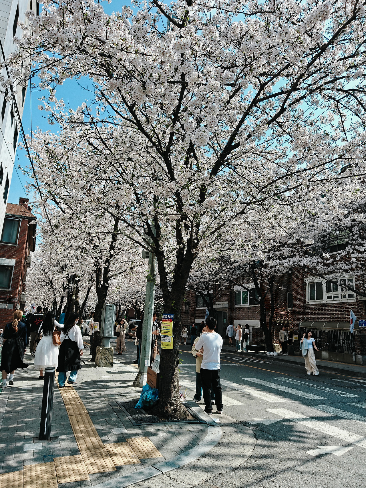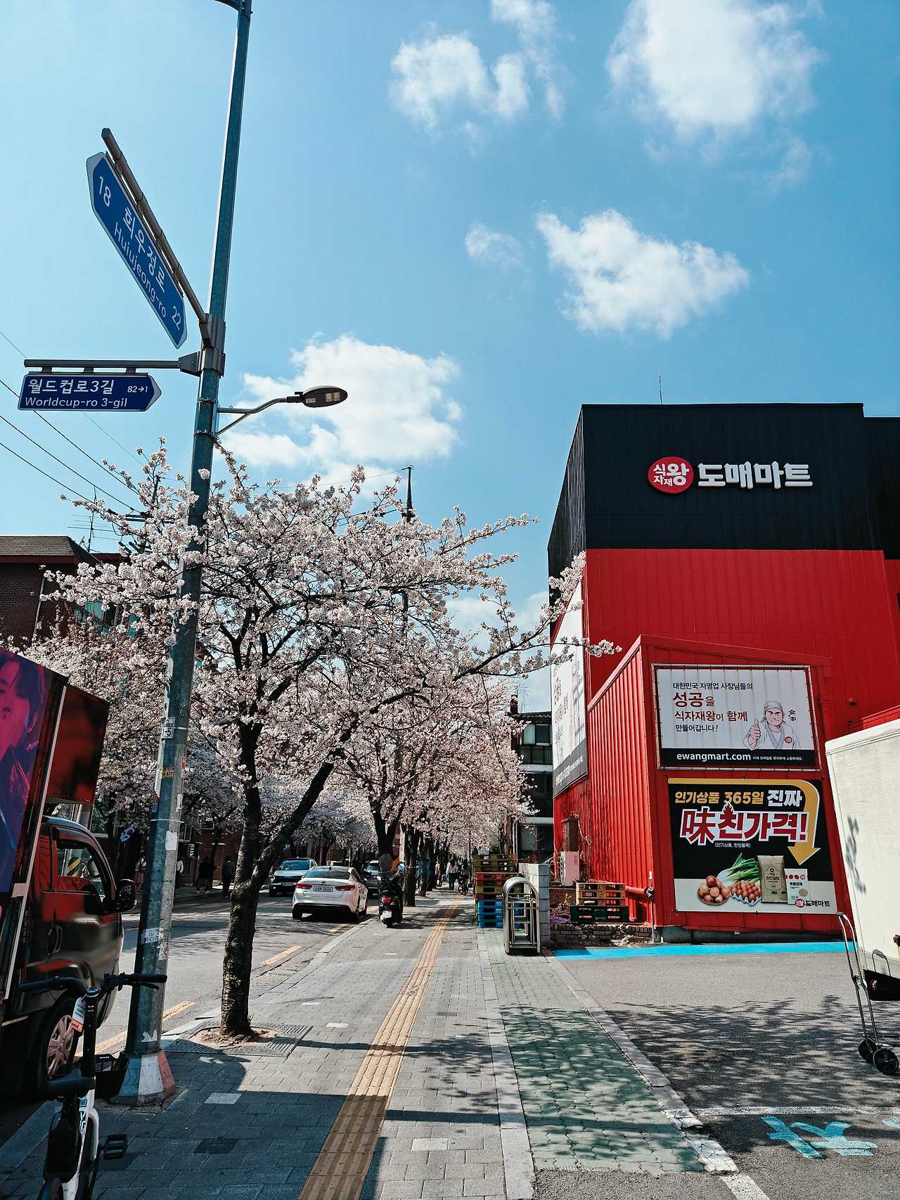 합정역 5,6번출구로 나와서 서교동 벚꽃길에서 시작한다.