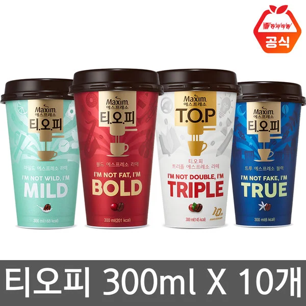 두말한 필요없는 베스트셀러인데 다만 제 입맛에는 다른 티오피는 다 탈락입니다. 즉 캔류로 나오는 제품들은 전혀 질이 높지는 않아서 그냥저냥이구요. 제가 추천해 드리는 것은 컵으로 출시된 아이들입니다. 최근에 출시된 너티카라멜 맛은 제 개취로 카라멜을 안좋아해서 보통 피하는데 이건 정말 괜찮습니다. 카라멜의 자극적인 단맛은 줄이고 넛트 류의 맛이 조화를 이루고 티오피 특유의 깊은 향이 납니다. 달달한 커피 좋아하면서도 뭔가 꽉 찬 우유의 맛도 같이 느끼고 싶으신 분들에게 티오피 추천합니다. 기존 맛들도 여러개인데 그냥 에스프레소는 별로니까 탈락, 라떼류가 마일드,볼드,트리플 순으로 강해지는데 볼드!! 가 딱입니다. 마일드는 정말 살짝 커피의 깊이가 아쉽고 트리플은 반대로 과하다는 느낌이 있어서 조화롭지 못한데 볼드가 달달하면서도 꽉찬 맛을 선사합니다. 결국 제 선택은 티오피 메뉴들중 너티카라멜과 볼드 이 두가지를 추천합니다.
