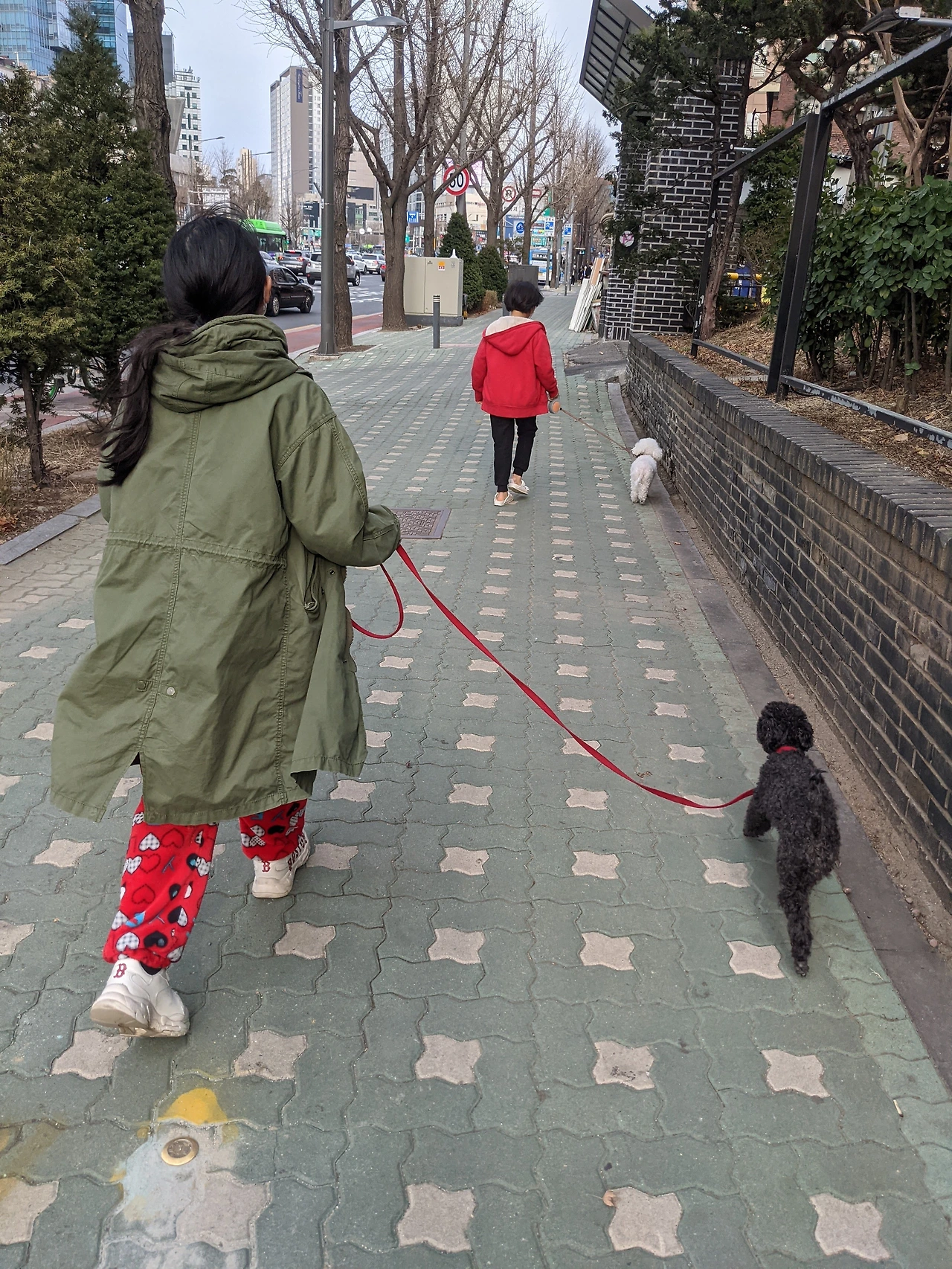 오후에는 산책을 기다리는 개들을 챙겨서 나갔다와야 한다. 물론 요즘은 아이들에게 개산책의