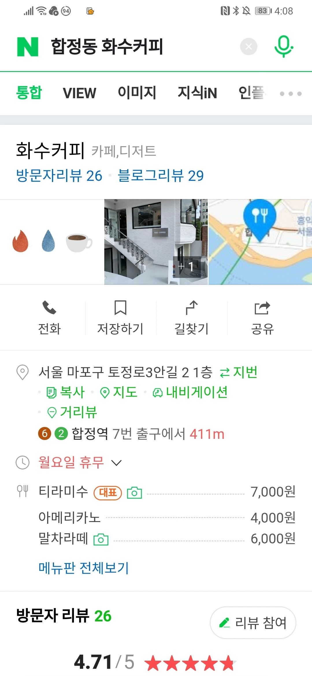 여기를 제외하고 근처의 더 작은 '화수커피'또한