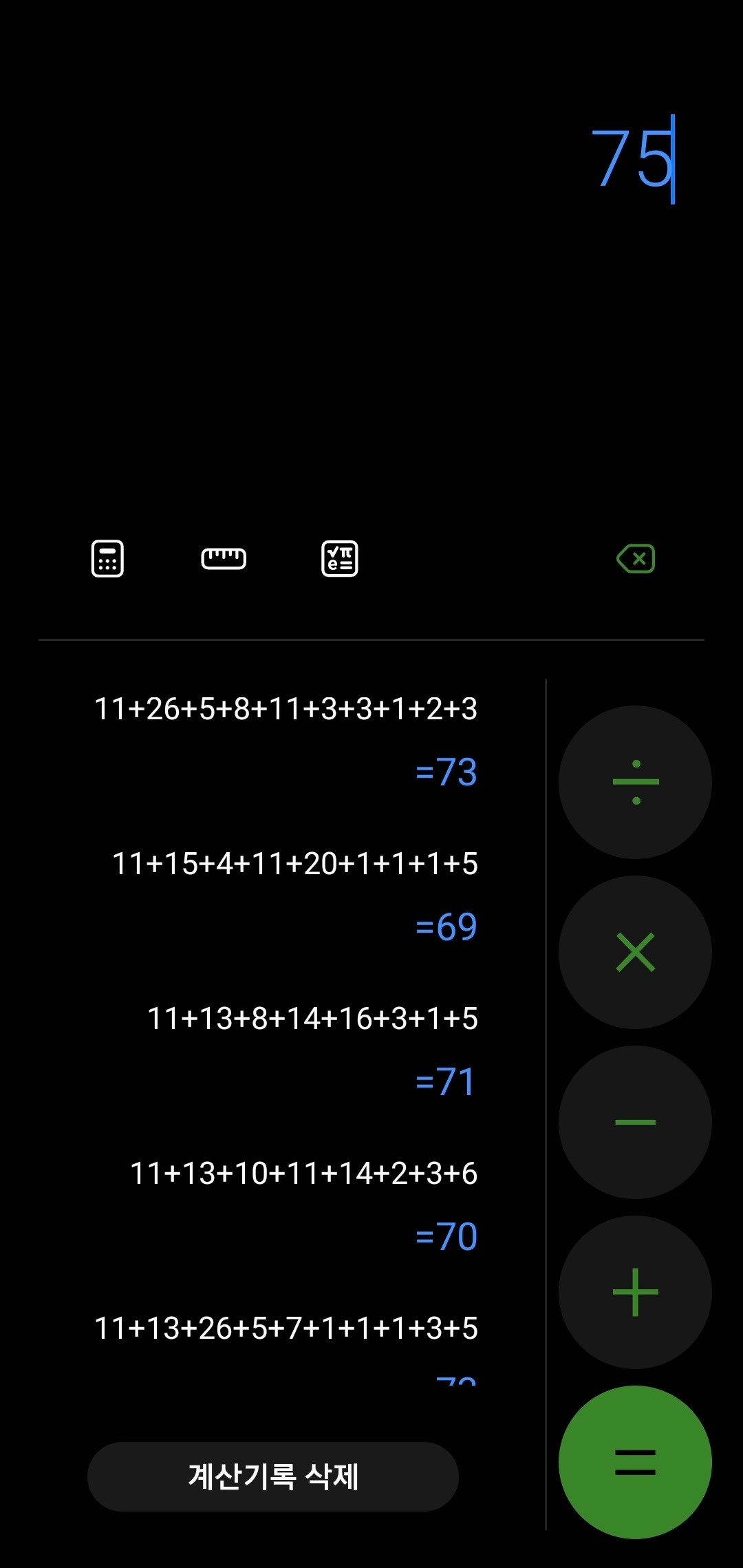 <캐스캐디아> 점수 계산기록. 최대 20개다. 그럼 20판은 넘게 했다는 거겠지...