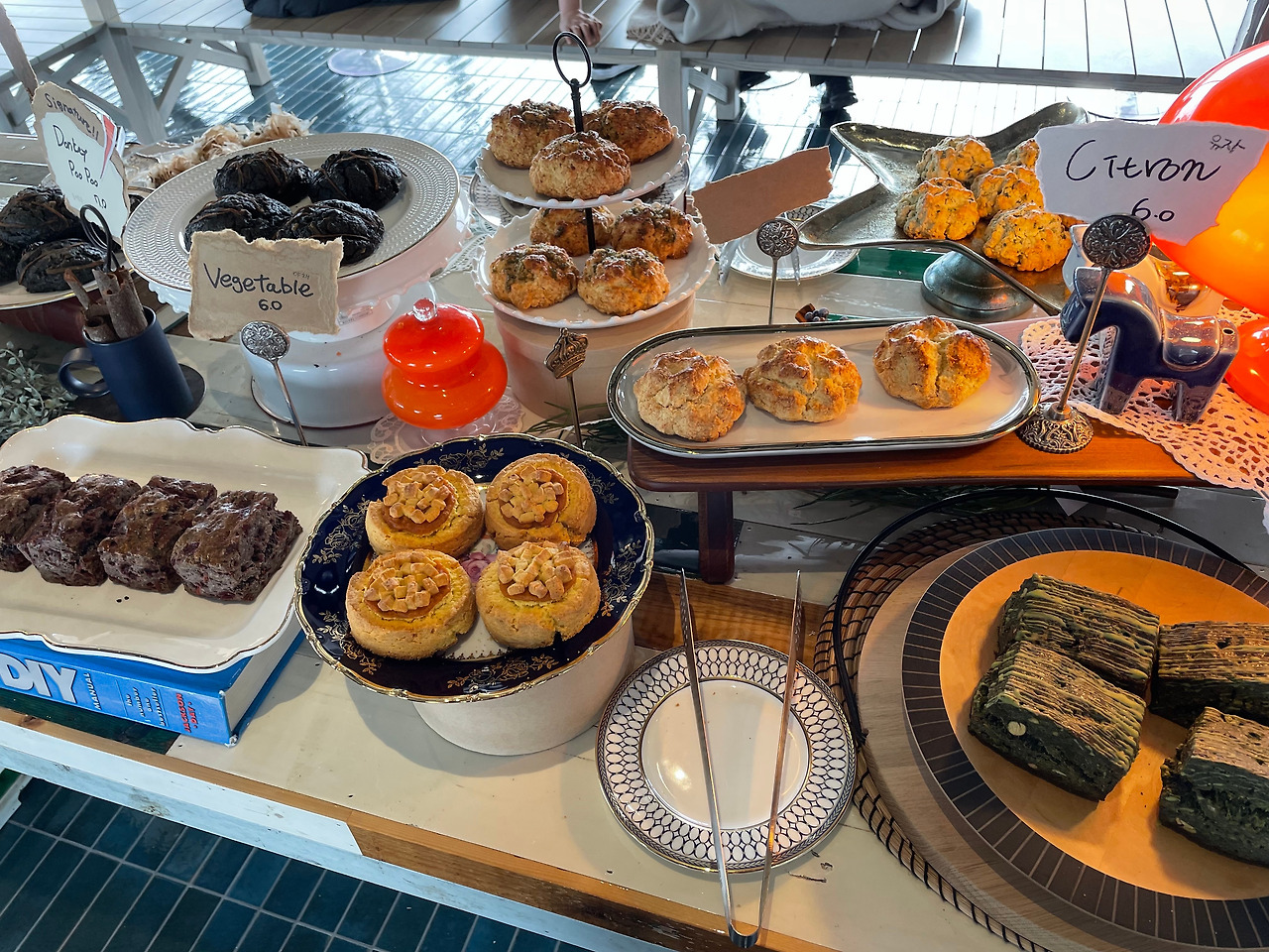 빵 종류로는 스콘들을 팔고 있었는데, 시그니처 메뉴가 '동키푸푸'였다. 해석하자면 당나귀똥이다.(와, 당나귀똥이 정말 맛있어요!) 개당 6~7천 원 정도 가격이었다. 물론 나는 스콘이 보통 얼마인지 알 길은 없었지만... 기분도 기분이고, 온 김에 사는 거고, 배도 고프고, 빵 냄새가 또 억수로 좋아서 그냥 하나씩 골라 사자고 했다.