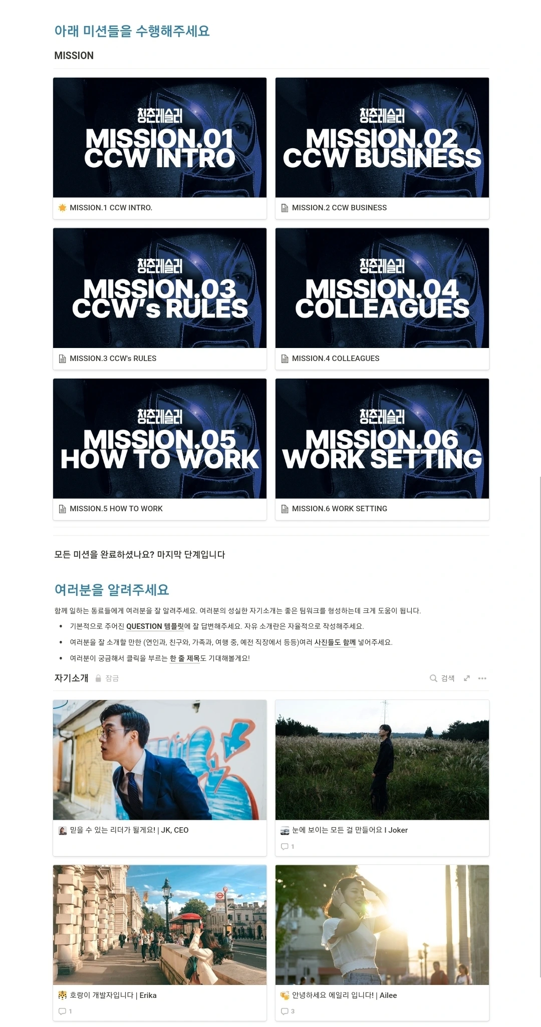 우리의 철학, 신념, 체계, 사업계획 등을 시작으로 일하는 방법, 자주 쓰는 단어들 그리고 당장 일하기 위한 계정 등의 생성까지 6단계에 걸쳐서 빠르고 효과적으로 OJT를 실시합니다.