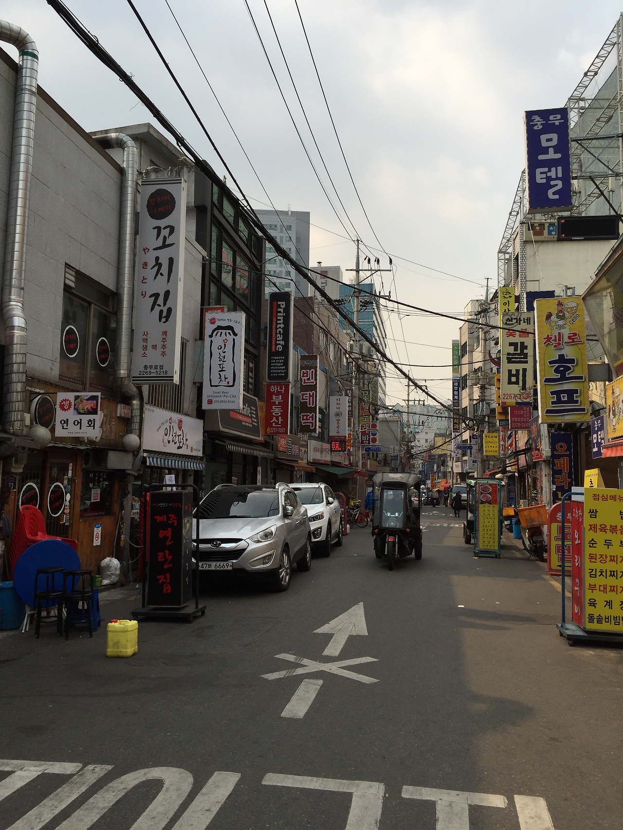 생선 굽는 냄새와 돼지뼈 우리는 냄새 그리고 오토바이 한 대만 지나가도 몸을 피해야 하는 좁은 골목과 분주하게 움직이는 사람들, 찰칵찰칵 인쇄가 돌아가는 소리들 속에서 모든 것이 잘 정리 정돈되고 세련되고 반듯반듯한 강남에서 느끼지 못한 푸근함을 느꼈습니다.