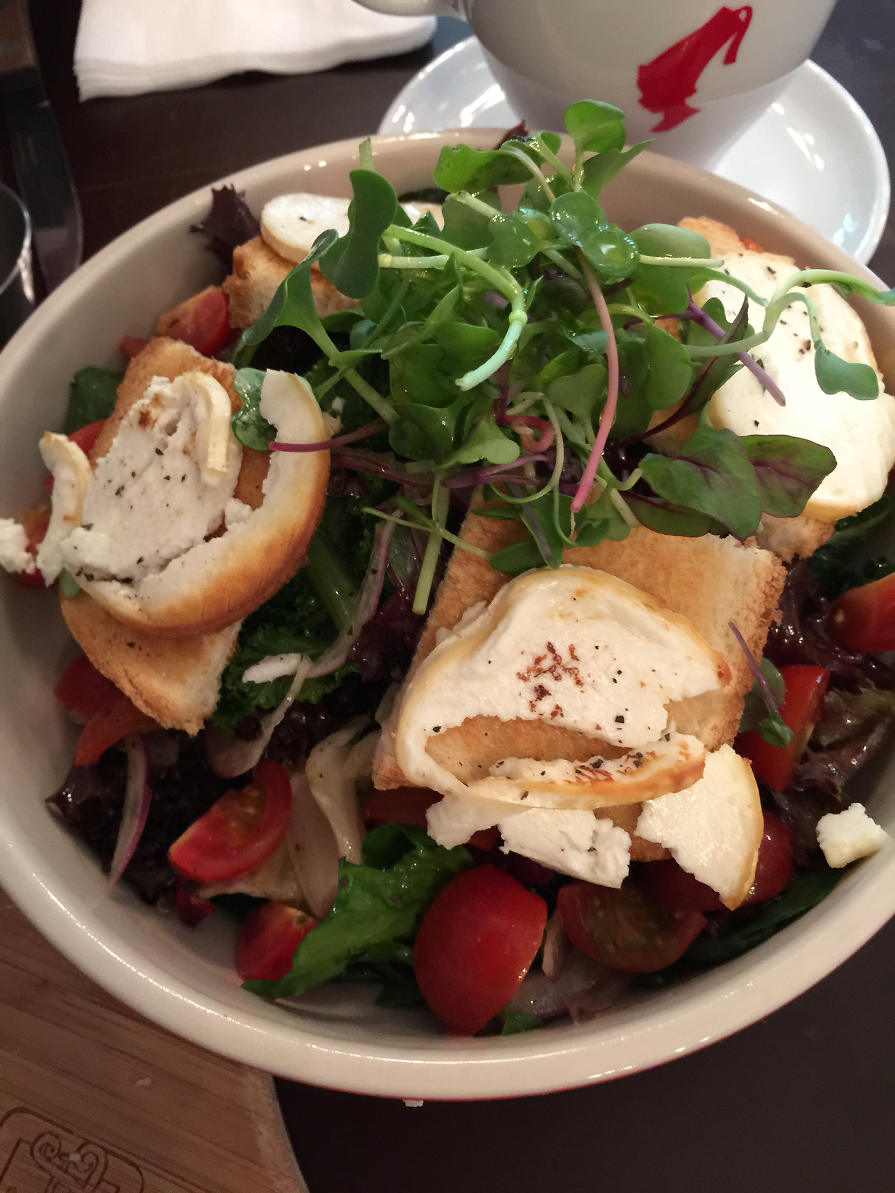 에피타이저로 먹은 샐러드 입니다. 염소젖으로 만든 생치즈의 비린맛이 입맛에 맞지 않았습니다.