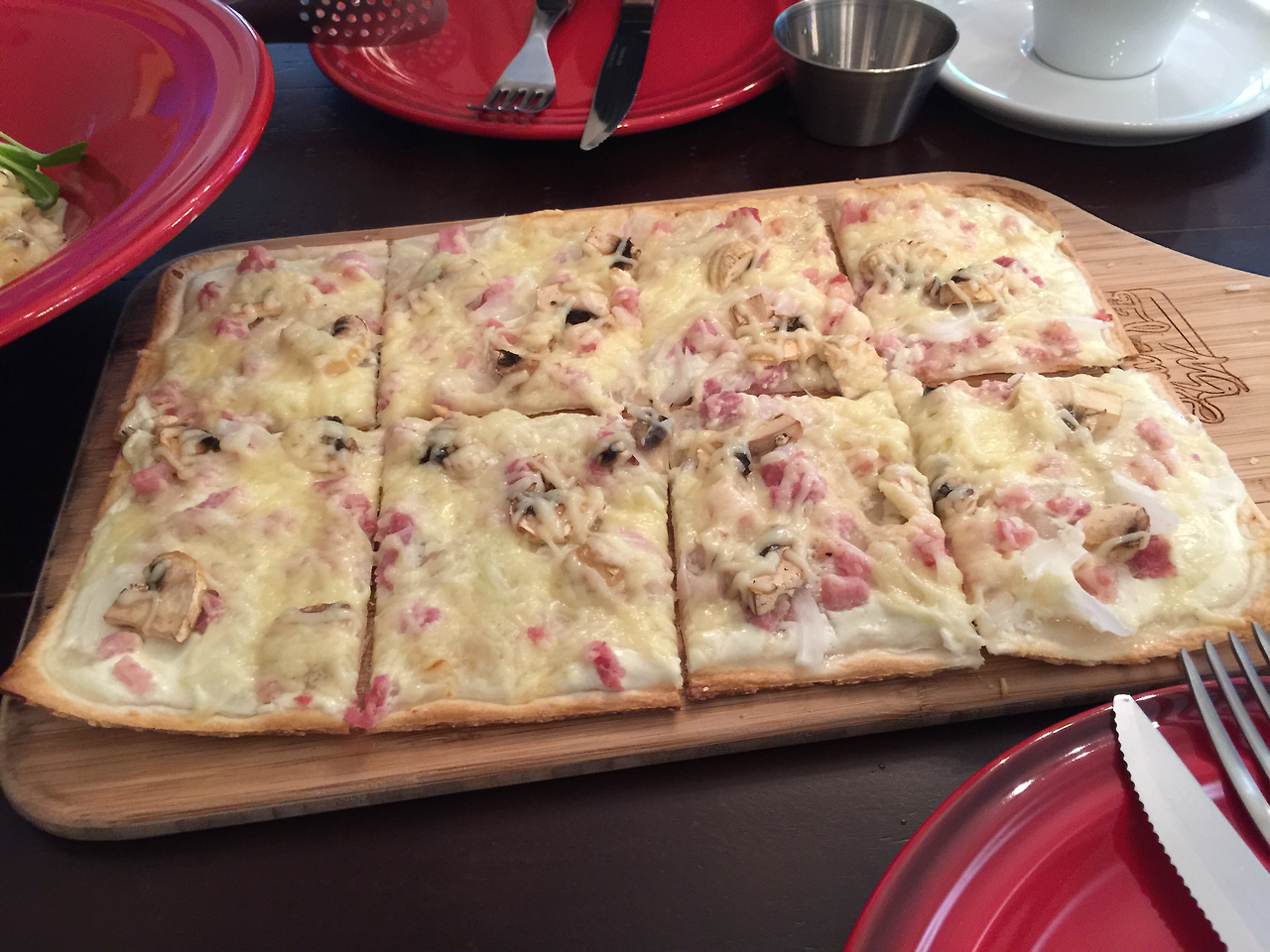 플람스는 얼핏 보기에는 네모난 피자 같았습니다.