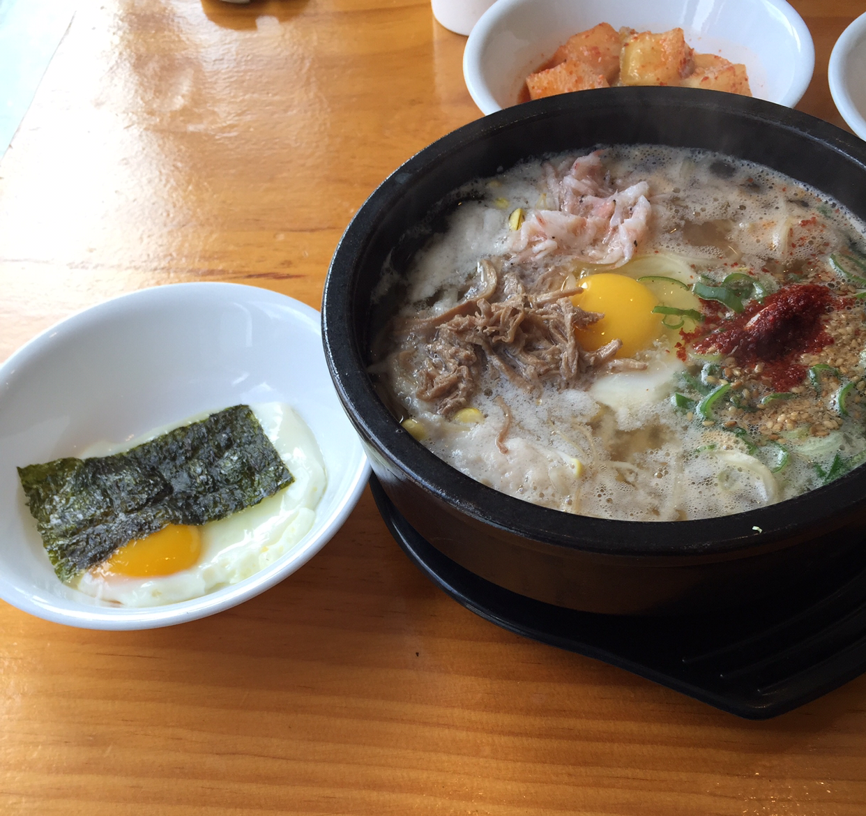 김을 국물에 적셔서 함께 먹으면 더 맛있다.