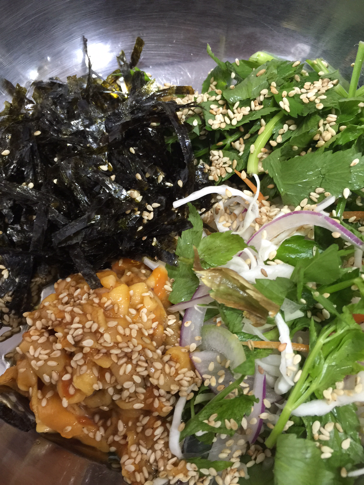 멍게 비빔밥을 시켜서 또 한 그릇 뚝딱 해치웠다. 어제저녁의 약속은 약속이니까...