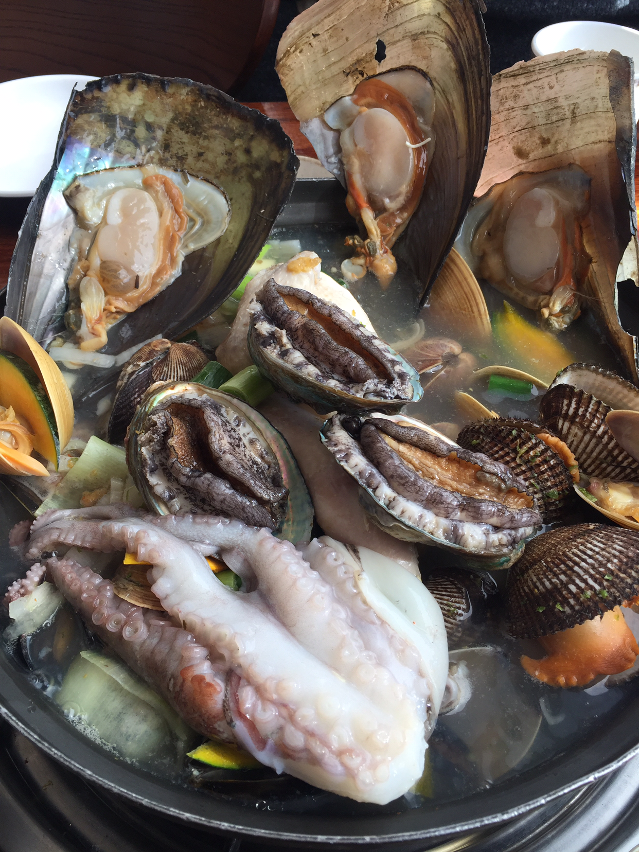 전복과 문어 키조개와 각종 조개가 익어간다.