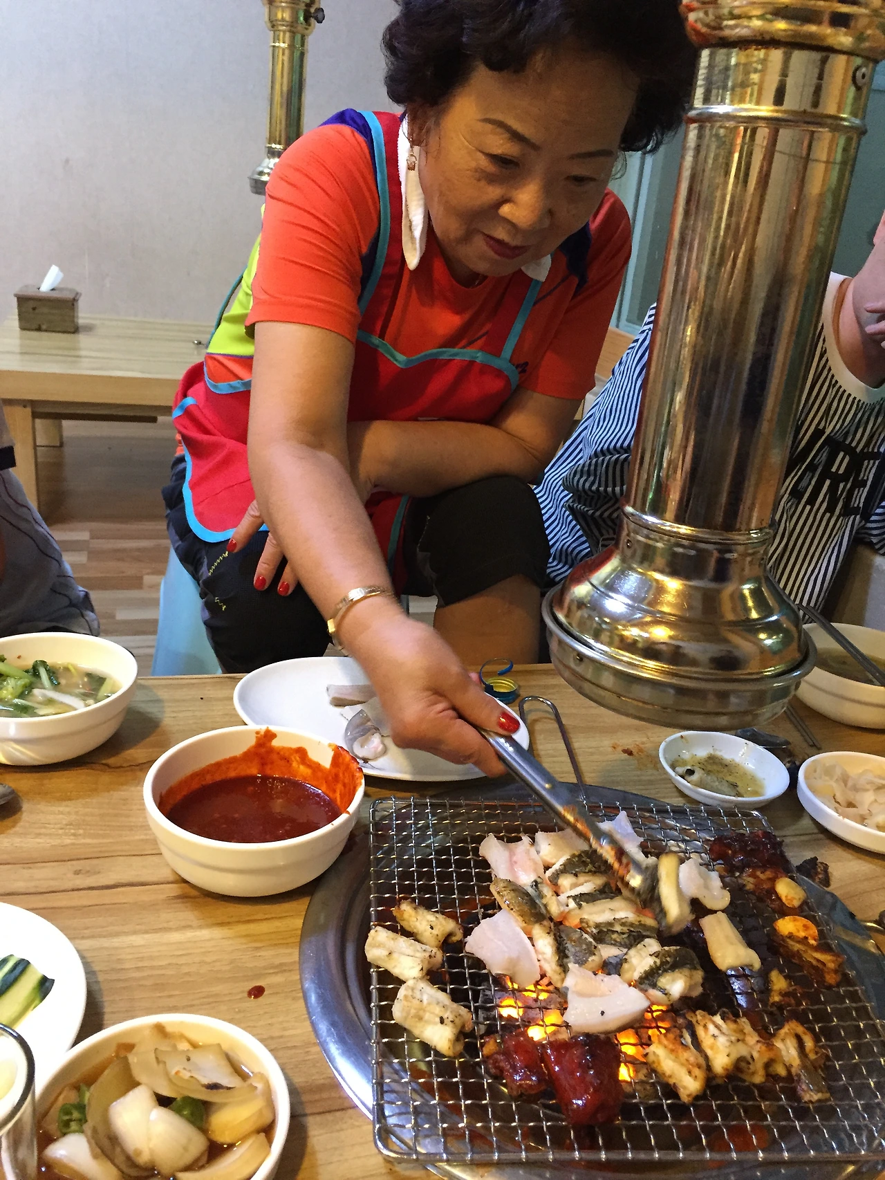 우리 일행이 들어갔을 때는 손님이 가득해 서툰 솜씨로 직접 구워 먹었는데 시간이 좀 지나니 할머니가 오셔서 직접 구워주시기 시작했다.