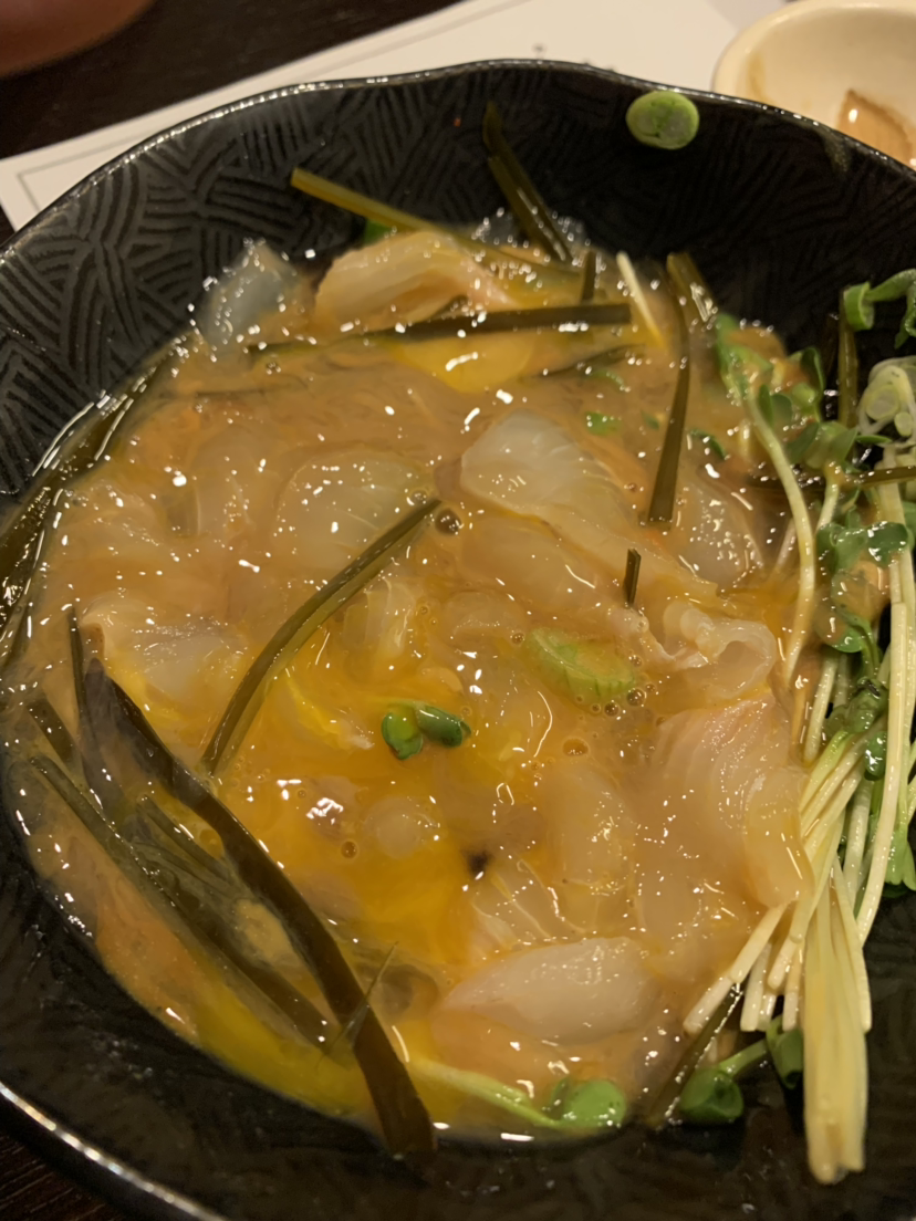 광어회와 고노와다를 잘 버무린 광어 고노와다는 씹는 맛과 신선함 그리고 입안 가득 바다의 향을 한꺼번에 느끼게 해 줍니다.