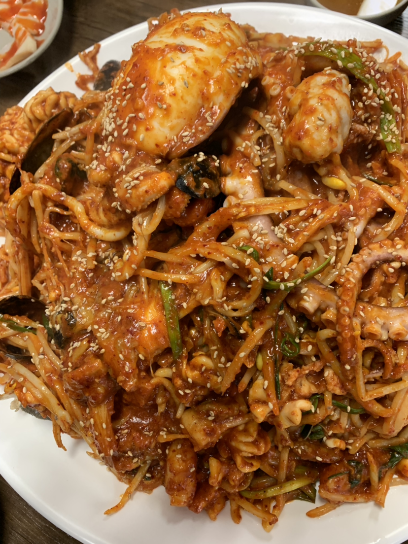 안주 겸 식사로 주문한 해물찜이 푸짐합니다.