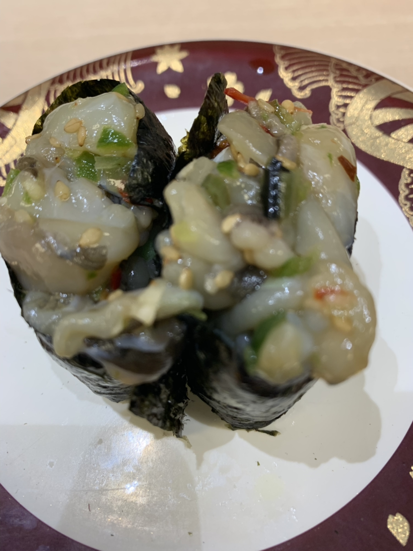 이름이 좀 이상하긴 하지만 '군함 말이'도 초밥집에 흔히 있습니다.