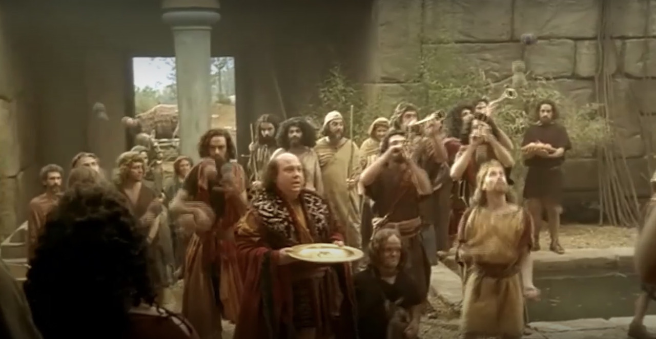 오디세우스는 마을에서 조금 떨어져 있는 외딴섬 서늘한 동굴에서 바구니마다 가득한 치즈를 발견합니다.
