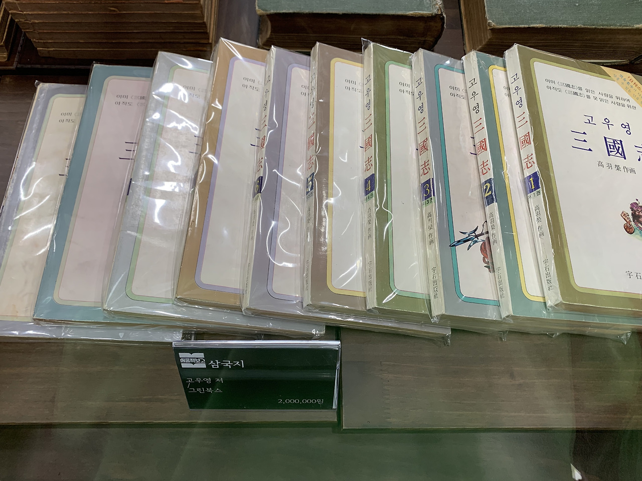 만화 삼국지 전집이 3백만 원이라는 가격표를 달고 있습니다.