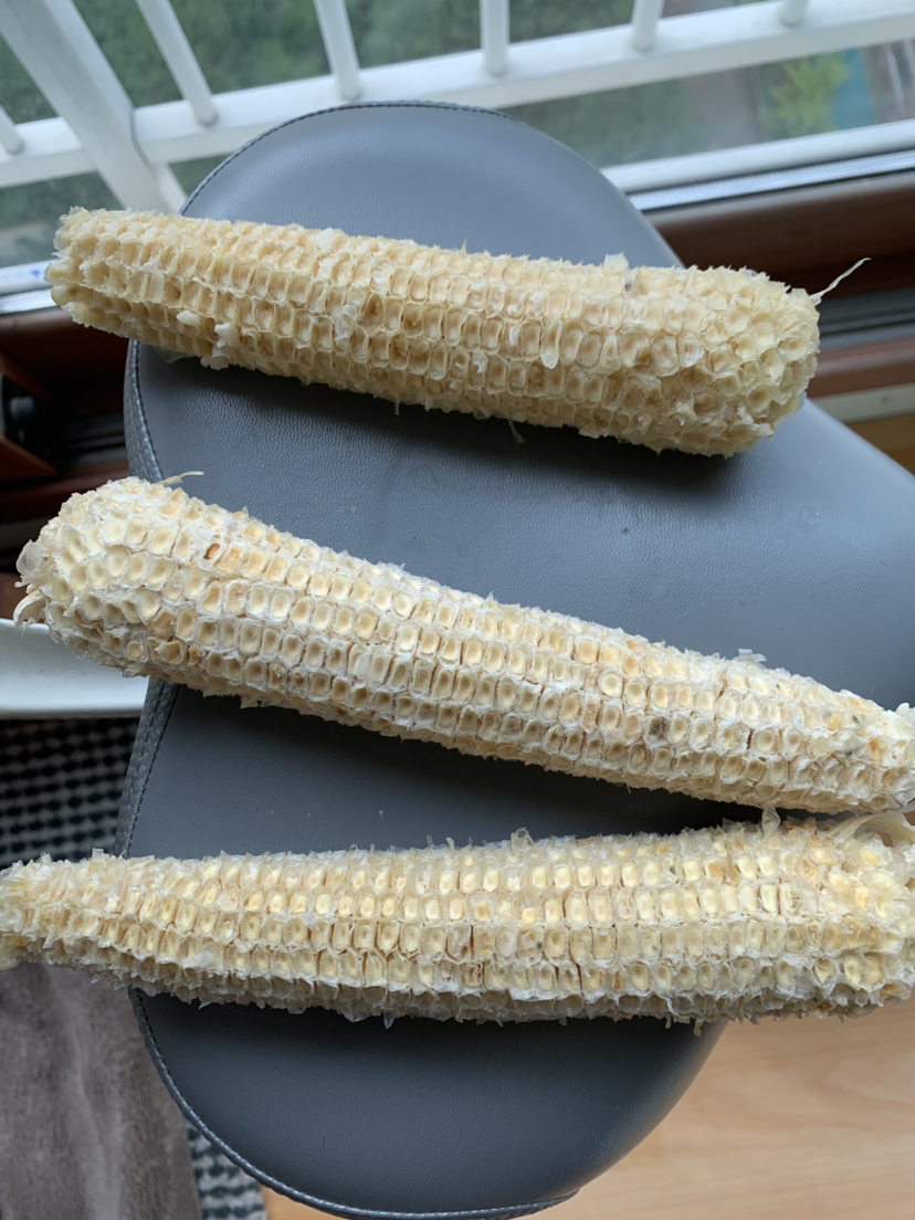 알갱이 다 파먹은 옥수수를 말리고 있습니다.