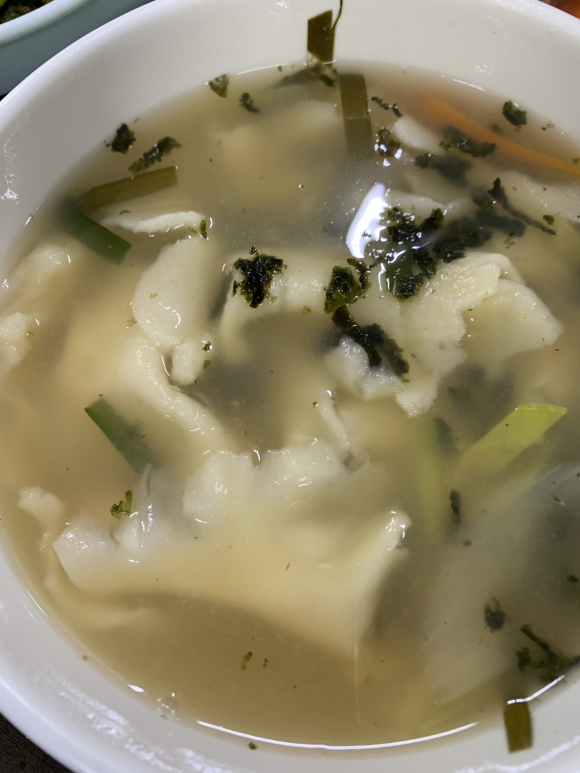 멸치로 국물을 낸 수제비와 시큼하게 잘 익은 열무김치가 기가 막히게 조화를 이루며 맛있습니다.