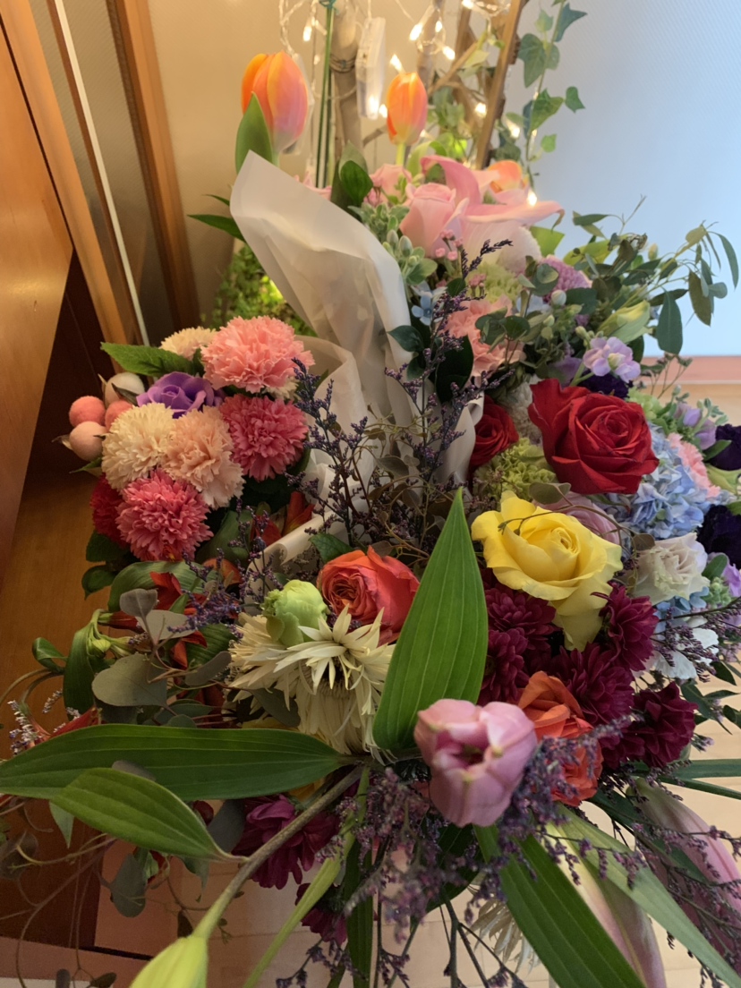 연말 시상식에 연예인처럼 두 팔로 안을 수 없을 만큼 꽃다발을 받았습니다.