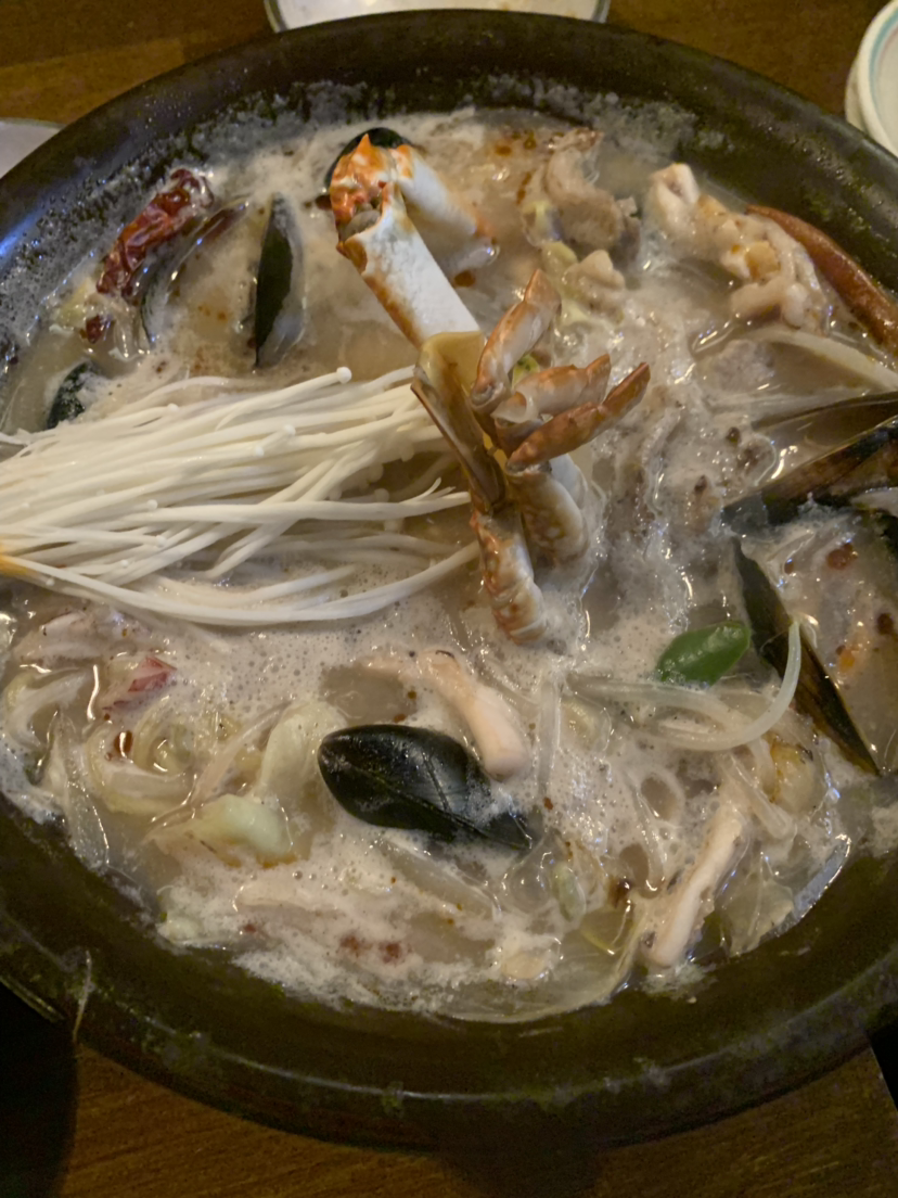 꽃게와 홍합, 오징어 등 해산물이 푸짐하게 들어있어 국물이 시원하고 건져 먹을게 많습니다.