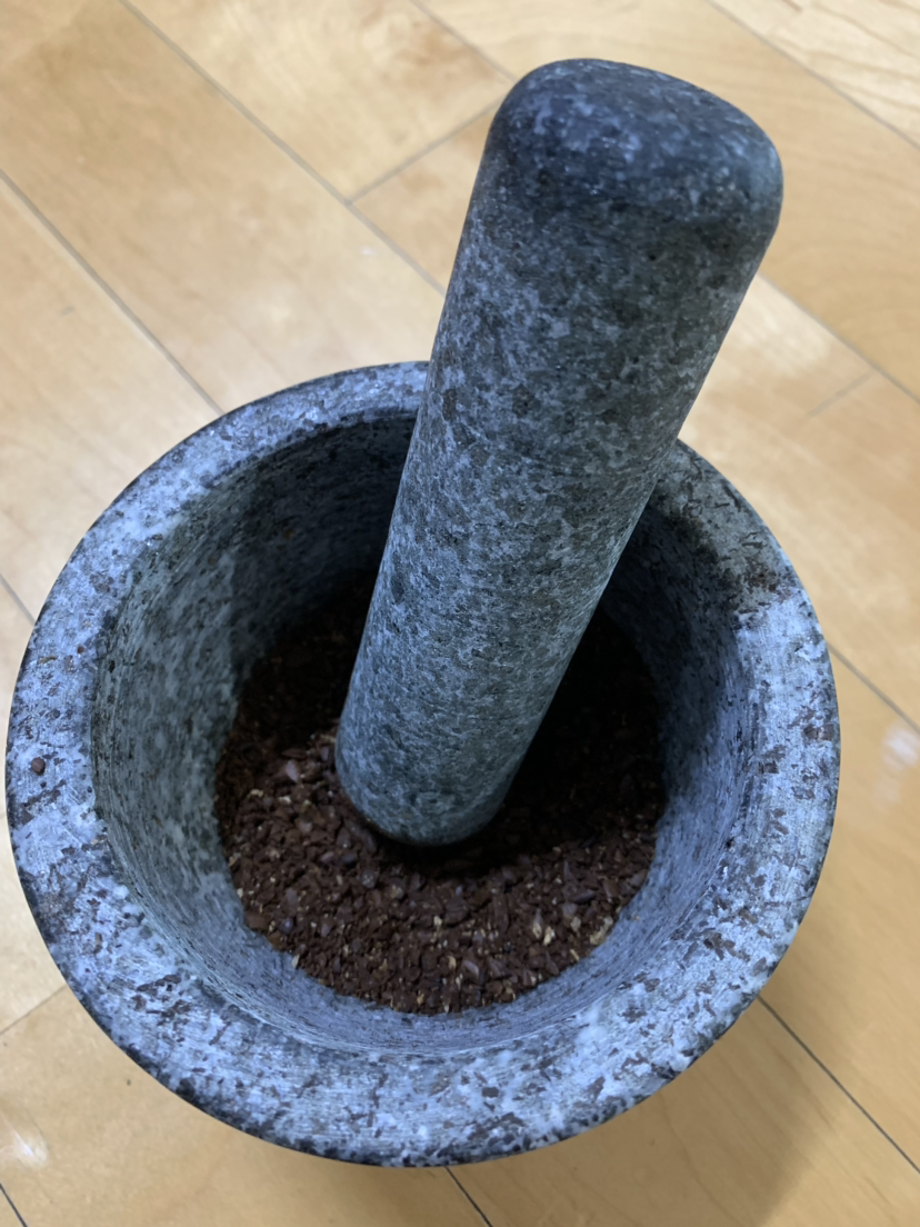커피 분쇄기가 고장이 나서 얼마 전부터 돌절구를 쓰기 시작했는데 아주 요긴하고 분쇄기보다 커피 향이 짙어서 이제는 아예 커피 전용 돌절구가 되었습니다.