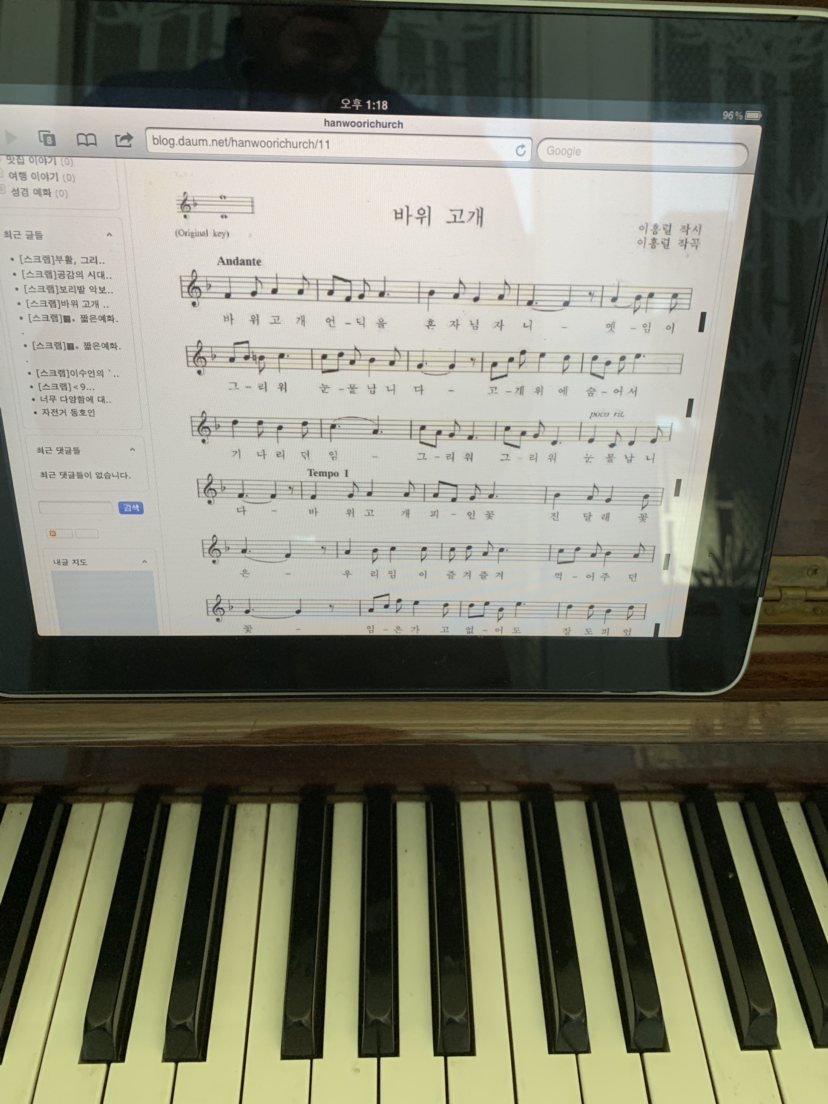 40년이 넘은 아내의 낡은 피아노 뚜껑을 열고 “바위고개”를 치며 나지막이 노래를 불러 보았습니다.