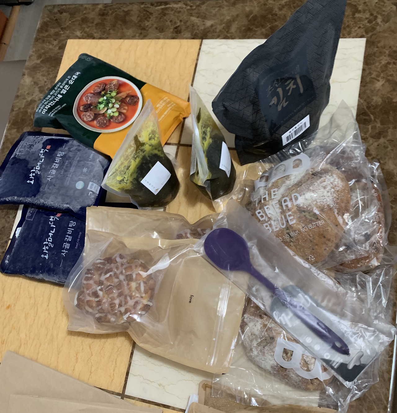 어젯밤에 주문한 여러 가지 HMR 식품이 새벽에 현관 앞에 도착했습니다.