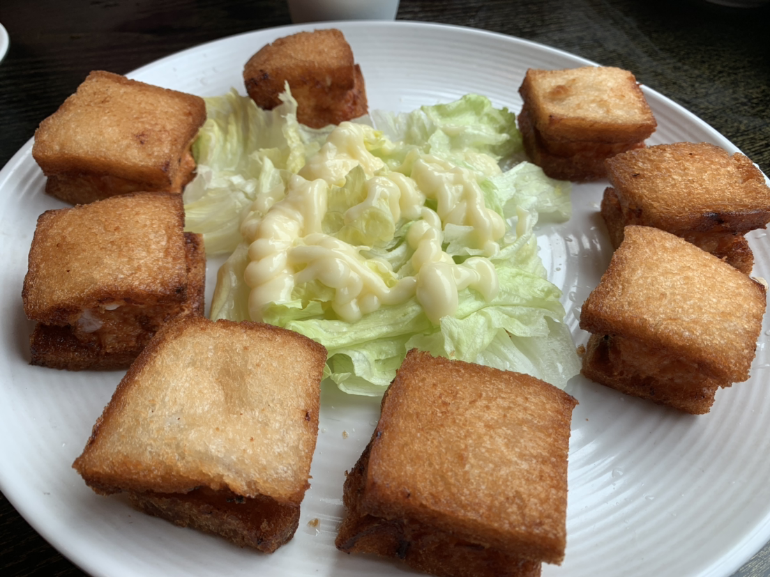식빵은 기름에 쉽게 타버리기 때문에 식빵을 태우지 않고 으깬 새우를 부드럽게 잘 익혀야 하는 멘보샤는 상당한 튀김의 기술이 필요한 음식입니다.
