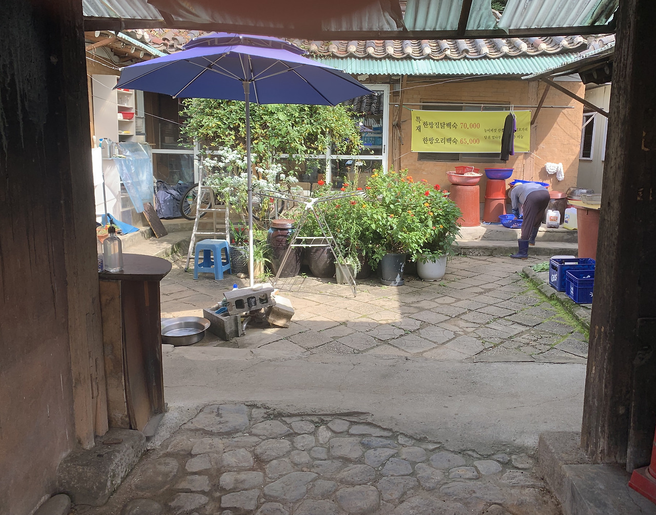 아궁이에 무쇠솥이 걸려있는 부엌에서는 할머니가 백숙을 끓이시느라 분주합니다.