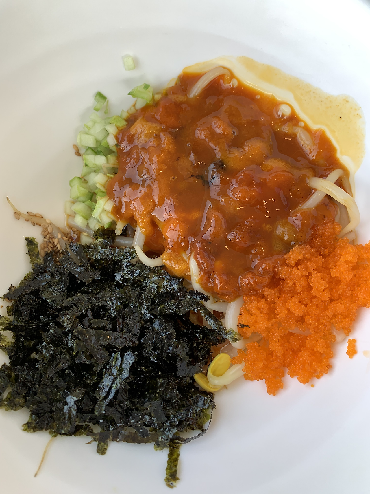 성게알 비빔밥은 뒷맛이 씁스름하지만 자꾸만 숟가락이 가는 매력이 있습니다.