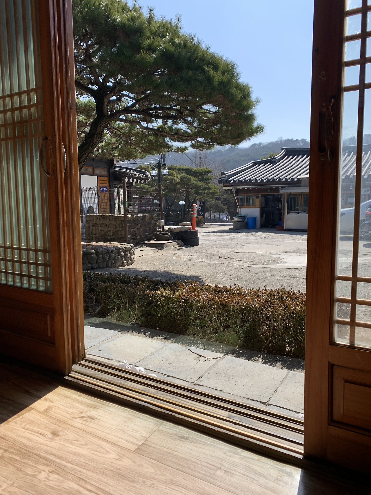 식당에 미닫이 방문을 여니 햇빛이 깊숙이 쏟아져 들어옵니다.