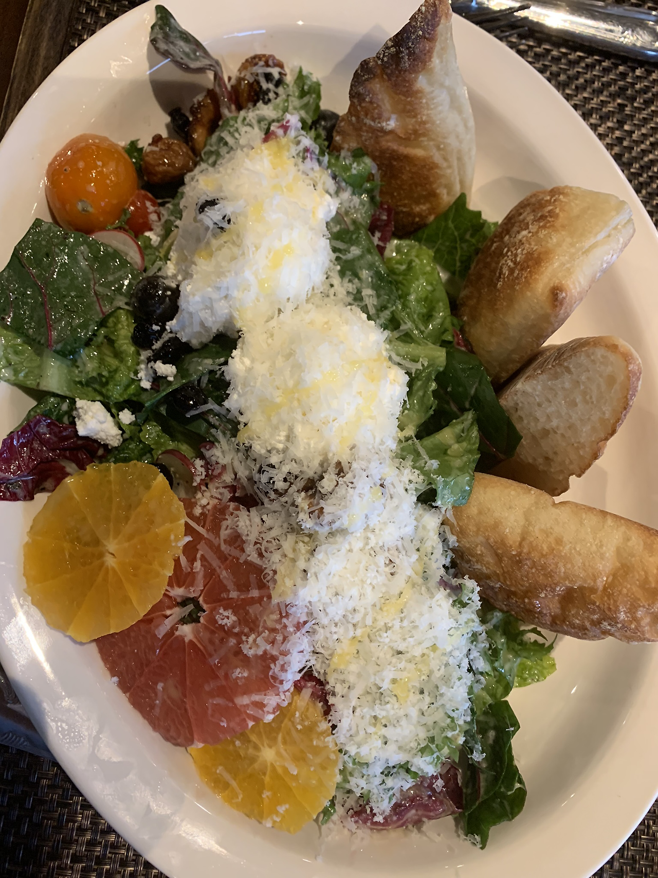 갓 구운 빵과 샐러드 그리고 커피입니다.