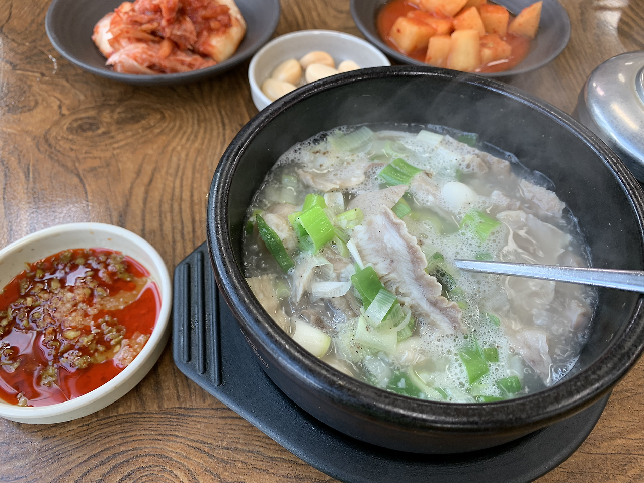 아침 운동 후 뜨거운 내장탕 한 그릇 먹고 있습니다.