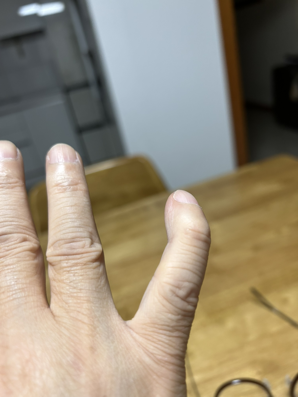 새끼손가락이 휜 채로 굳어버렸습니다.
