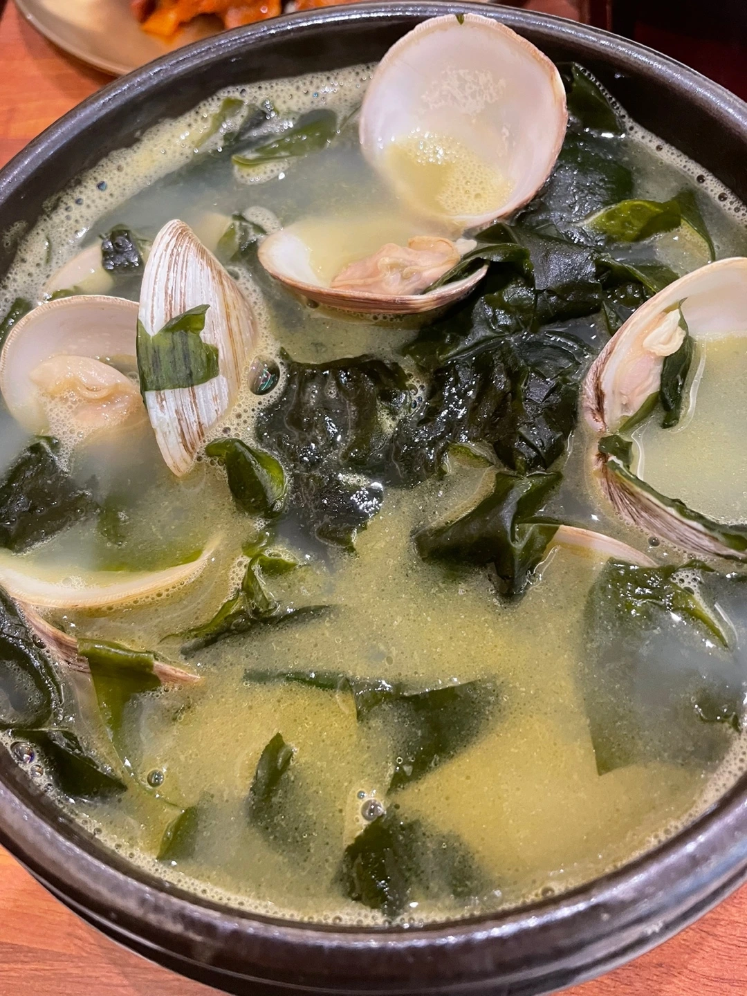 점심으로 조개가 잔뜩 들어간 미역국을 먹었습니다.