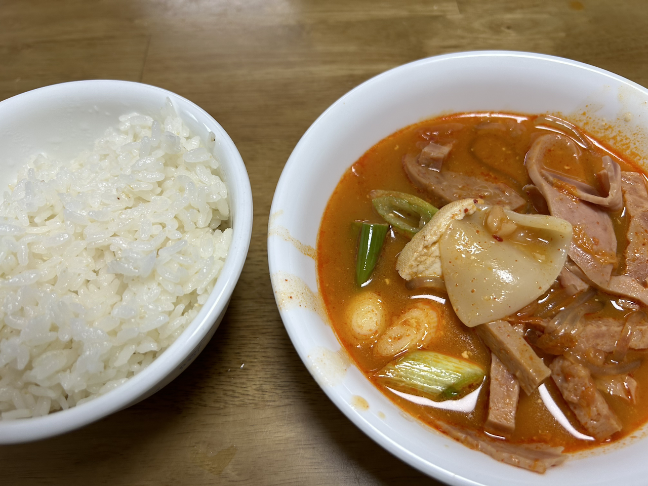 밀키트 부대찌개와 따뜻한 밥을 먹었습니다.