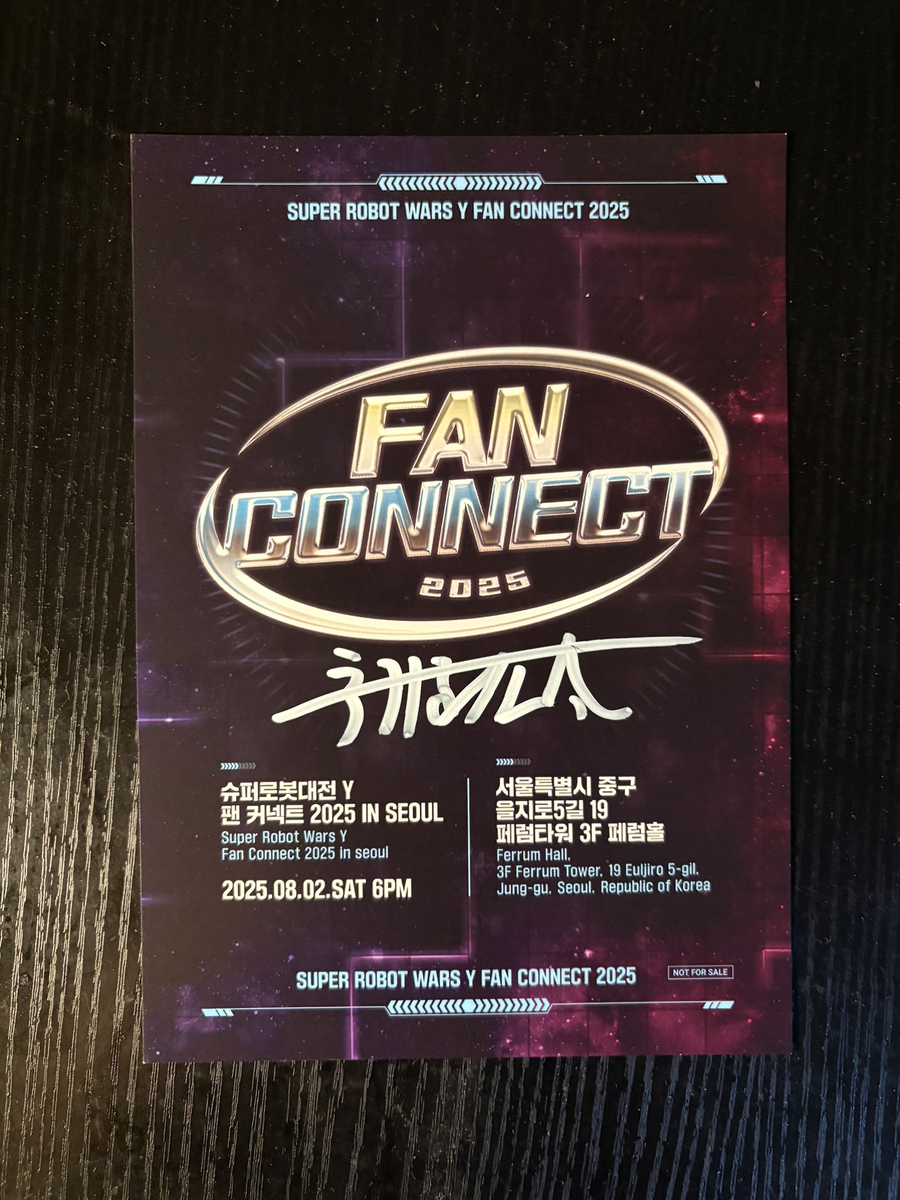 그렇게 팬 커넥트 시간은 끝나고. 사인회가 진행되었다. 나는 따로 슈로대 제품을 들고 오지도 않았고, 옛날 시리즈에 지금 프로듀서인 토마 코타에게 사인 받는 것은 크게 의미가 있진 않은 것 같아서 그냥 나왔다. 나올 때 직원이 토마 코타 프로듀서가 사인을 미리 해둔 종이를 나눠주길래 낼름 받았다. 직접 받는 건 아니지만 이렇게 준비해서 주는 것도 꽤 센스가 있어 좋았다.