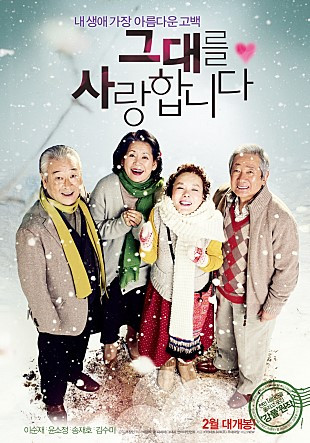 여기 한 영화가 있다. ‘죽어도 좋아’ 가 자극적 소재로 노인들의 사랑을 다루었다면 이 영화는 감성적인 노인들의 사랑을 전면에 내세워 등장했다. 강풀 원작의 웹툰 ‘그대를 사랑합니다’를 영화화한 동명의 작품이다. 이전의 한국 영화 내지는 드라마에서 노인 캐릭터는 크게 3가지였다. 하나는 치매를 앓고 있는 짐짝 취급당하는 캐릭터였고, 둘째는 자식과 가족에 대한 무한한 사랑 (스톨게)을 보여주는 역할이었고 마지막은 고집 센 캐릭터로 다른 캐릭터들에게 곤경을 처하게 하거나 갈등을 조장하는 캐릭터였다.