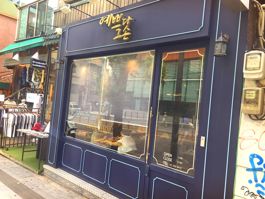 서론이 길었다. 그리하여 오늘 에디터 J가 여친님과 방문한 체험 장소는 홍대에 위치한 '예쁘다 그 손'. 솔직히 말하겠다. 내가 가자고 해놓고서도 막상 문 앞에 서니 발걸음이 쉽게 떼어지지 않는다... "안에 계신 여자분들이 날 이상하게 생각하진 않을까..." 그럼에도 꿋꿋이 문을 열고 입성(!)