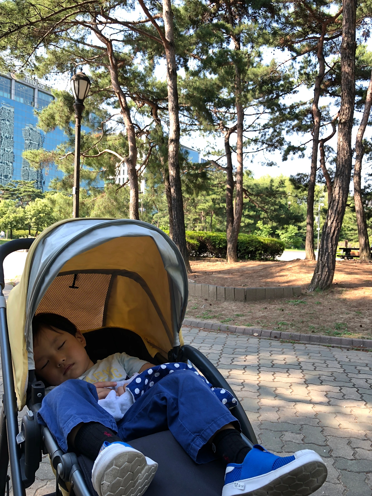 선우는 여름이다, 여름이다,를 몇 번 반복하다 고개를 숙이고 잠들었다. 유모차를 뒤로 제껴 편히 누울 수 있게 해주었다. 편하게 느끼며 잠들 수 있는 시기가 거의 끝난 것 같다. 불과 몇 달이면 몸이 유모차를 넘치리라.